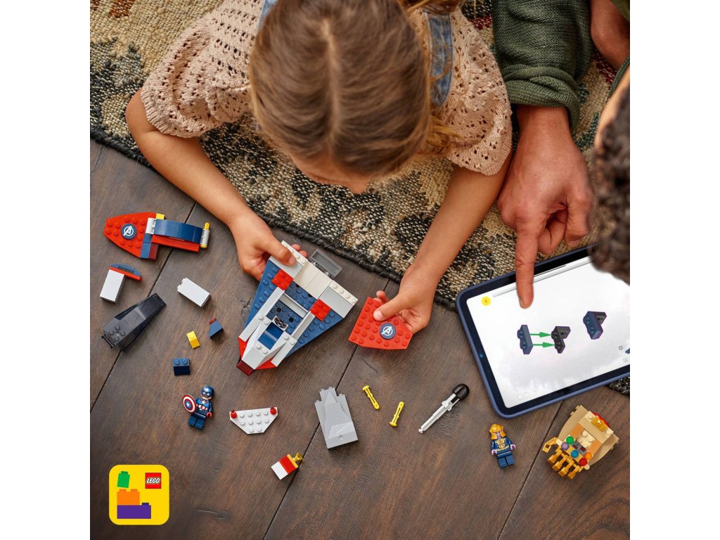 Kapitán Amerika vs. Thanos je sestavitelná superhrdinská stavebnice pro děti od 4 let. Tato kvalitní stavebnice pro kluky a holky obsahuje vesmírné lodě a minifigurky LEGO | Marvel a představuje skvělý dárek k jakékoli příležitosti. Stavebnice obsahuje 2 minifigurky: Thanose ve vesmírné lodi, která vypadá jako Rukavice nekonečna s pohyblivými „prsty“ a odpalovačem raket, a Kapitána Ameriku v elegantním Quinjetu se 2 vystřelovači, otevíracím kokpitem a skrytou přihrádkou na štít. Další model představuje kosmický kámen, který inspiruje k nápaditému hraní na Kapitána Ameriku, který se snaží zabránit Thanosovi v krádeži cenného drahokamu. V balení najdete sáčky s kostkami a velkou začátečnickou kostku v každém sáčku, se kterými se můžete rychle pustit do hraní. Součástí je intuitivní návod na stavění v podobě barevné brožury. Stavebnice obsahuje 107 dílků. Stavebnice LEGO pro děti od 4 let představují skvělý způsob, jak mohou dospělí se svými dětmi sdílet zábavu při stavění.