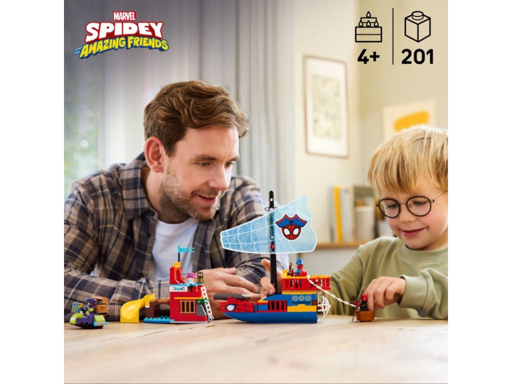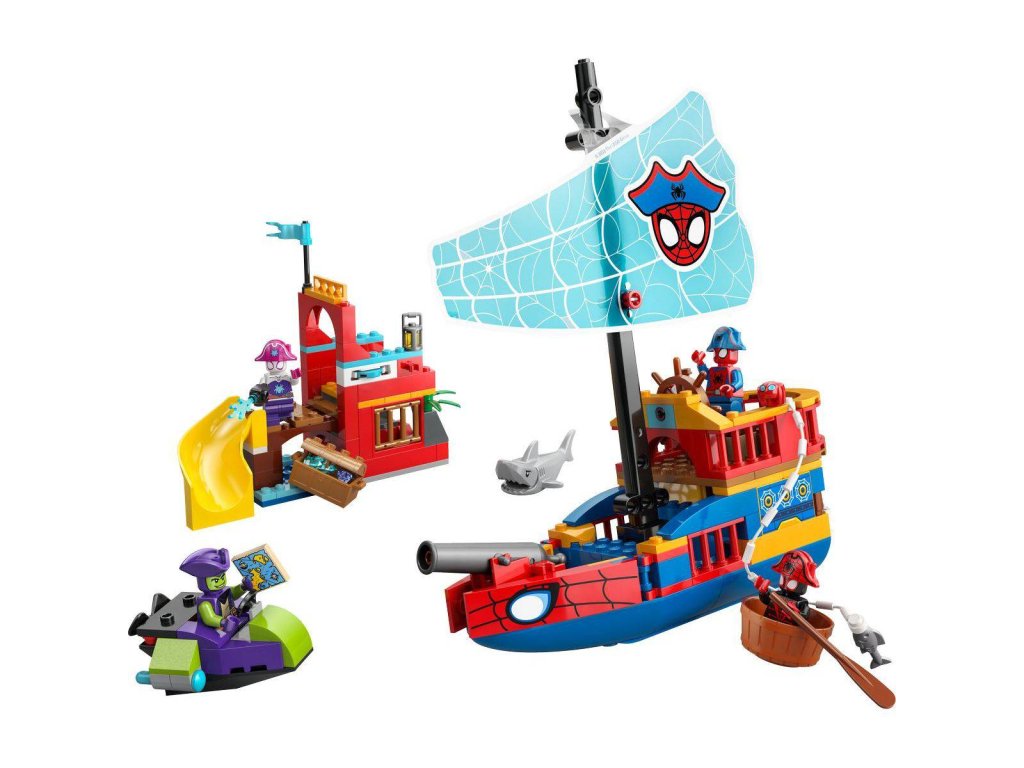 Vydejte se na plavbu plnou fantazie s kreativní stavebnicí Pirátská loď Spideyho týmu se Spideym, Zeleným Goblinem, Ghost-Spider a Milesem „Spinem“ Moralesem. Tato stavebnice pro holky a kluky od 4 let představuje skvělý způsob, jak rozvíjet dovednosti při zábavném objevování moře a Pavoučího ostrova. Tato stavebnice se Spideym je plná funkcí a obsahuje pirátskou loď, Pavoučí ostrov se skluzavkou, loď Zeleného Goblina a menší člun. Na pirátské lodi najdete dělo, na ostrově je vystřelovač disků a na lodi Zeleného Goblina najdete vystřelovače. Pomocí Spideyho pavučinového lana můžete chytat ryby, vylovit truhlu s pokladem nebo loď Zeleného Goblina.