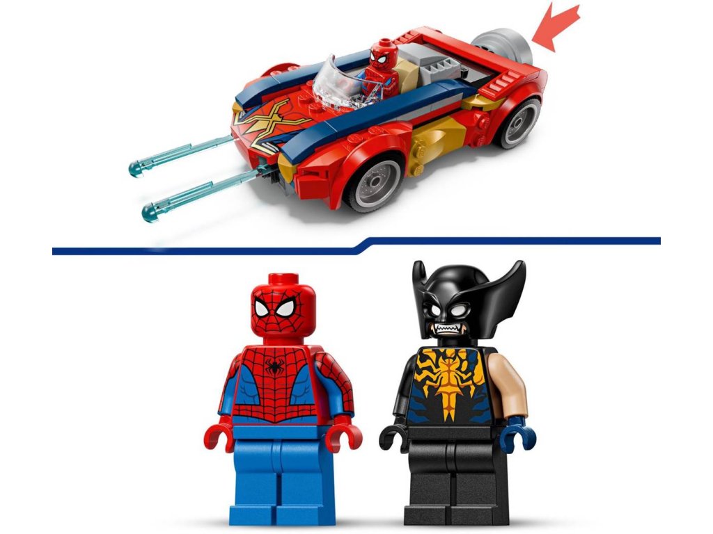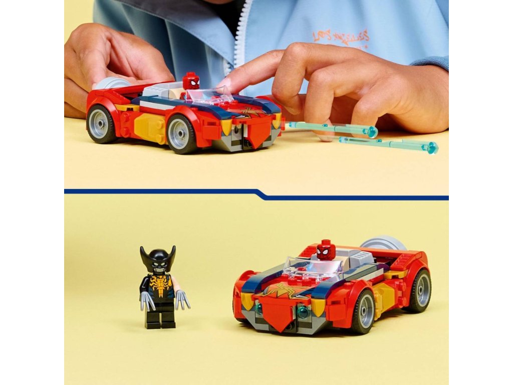 Vrhněte se do akční bitvy superhrdinů se stavebnicí Spider-Man a auto vs. venomizovaný Wolverine pro holky a kluky od 7 let. S touto stavebnicí s vozidlem připraveným do boje s minifigurkami Spider-Mana a venomizovaného Wolverina si děti užijí hodiny akčního hraní na hrdiny ve stylu LEGO Marvel. Jedná se o první stavebnici LEGO Marvel s minifigurkou venomizovaného Wolverina. Akční souboj se sestavitelnou superhrdinskou hračkou se odehrává v autě Spider-Mana a kolem něj. V zadní části najdete spouštěcí mechanismus, který aktivuje 2 pružinové vystřelovače v přední části. Tato stavebnice představuje skvělý dárek k narozeninám pro malé superhrdiny, fanoušky filmů od studia Marvel a Spider-Mana.