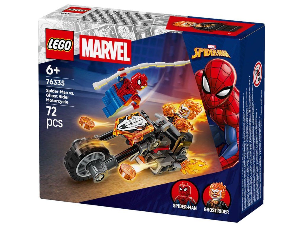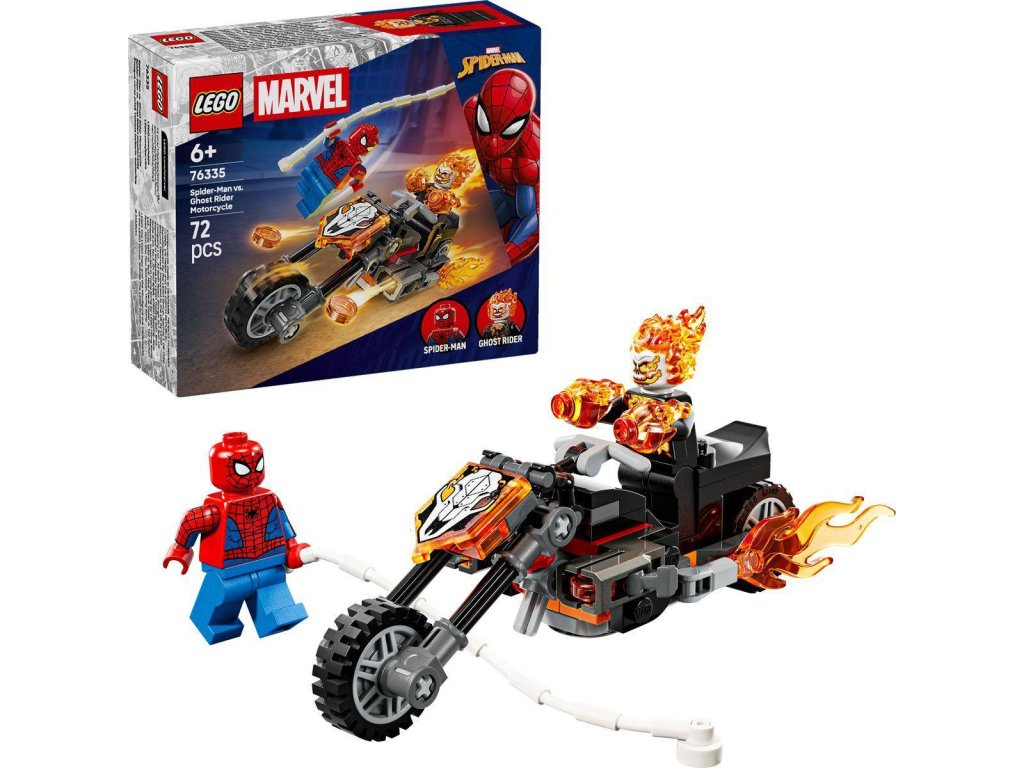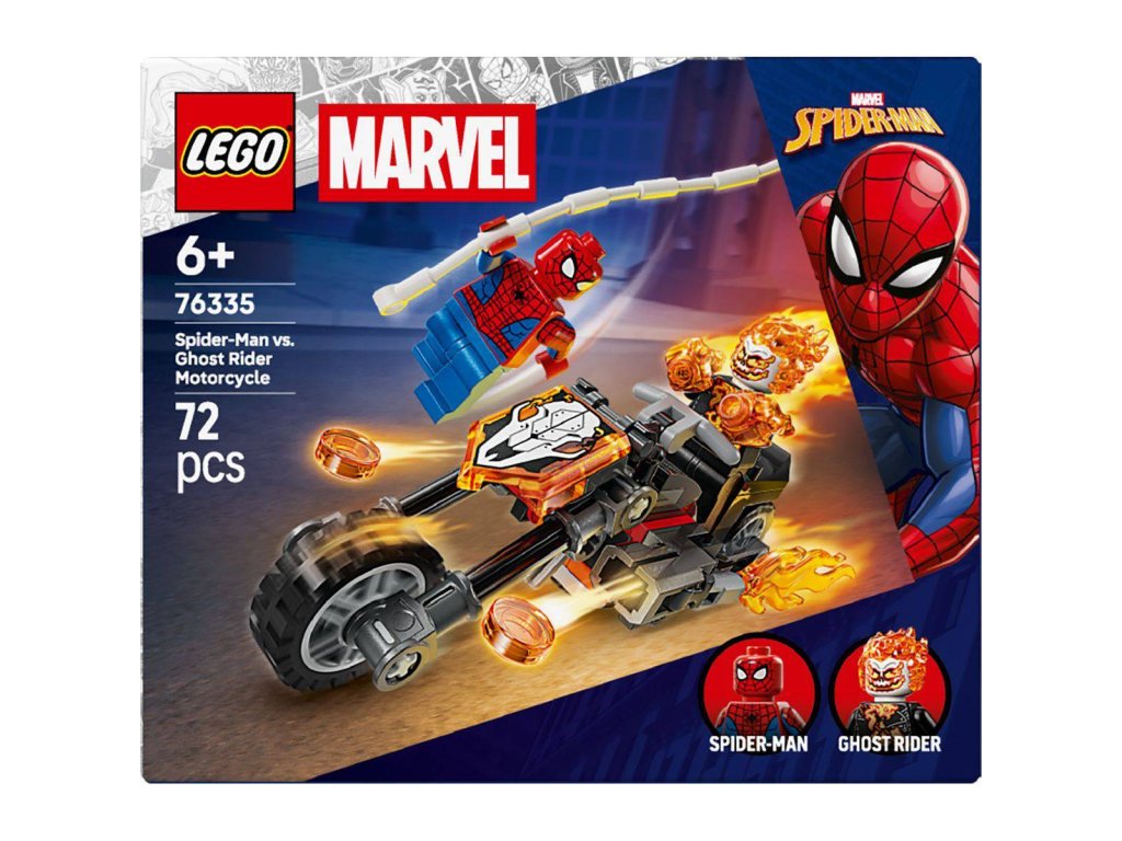 LEGO 76335 - Spiderman vs. Ghost Rider na motorce z produktové řady MARVEL. Kvalitní, dětské plastové kostky.