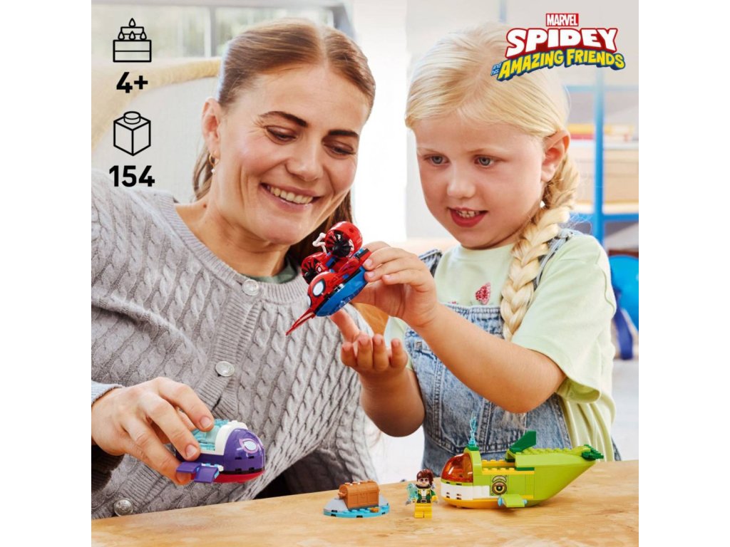 Vydejte se na dobrodružství se stavebnicí Spidey: Podmořská vozidla pro kluky, holky a fanoušky LEGO Marvel od 4 let. Součástí stavebnice je minifigurka Spideyho, Ghost-Spider a Doktorky Ock se 3 ponorkami, díky kterým si děti užijí živou hru, která rozvíjí jejich kreativitu. Nechybí trojice podmořských vozidel: Spideyho krabí ponorka s velkou pavučinovou pastí, želví ponorka Ghost-Spider s otevíracím průhledným krunýřem a velrybí ponorka Doktorky Ock s vystřelovači na ploutvích a úložným prostorem pro truhlu s pokladem. Stavebnice Spidey: Podmořská vozidla poslouží jako skvělý dárek k narozeninám pro fanoušky seriálu Spidey a jeho úžasní přátelé.