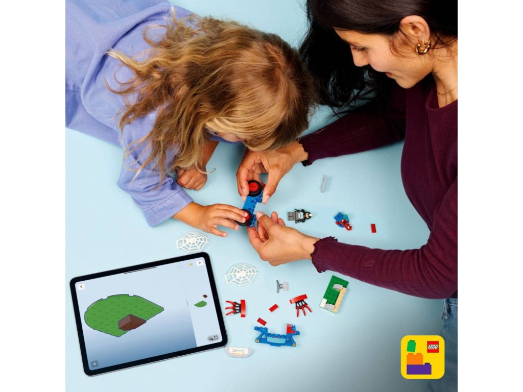 Tato stavebnice byla navržena pro začínající stavitele a je plná detailů, které děti inspirují k hodinám nápaditého hraní. Poslouží jako skvělý dárek k narozeninám nebo jakékoli jiné příležitosti pro fanoušky seriálu Spidey a jeho úžasní přátelé. Součástí balení je barevný obrázkový návod nastavění, velké začátečnické kostky a samostatné sáčky - v každém je jeden sestavitelný model -, díky kterým se děti rychle a snadno pustí do stavění. S aplikací LEGO® Builder děti můžou přibližovat a otáčet modely ve 3D a sledovat postup pomocí srozumitelného digitálního návodu.