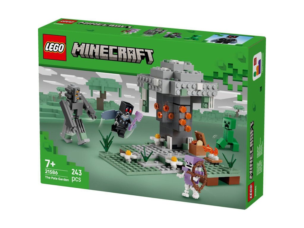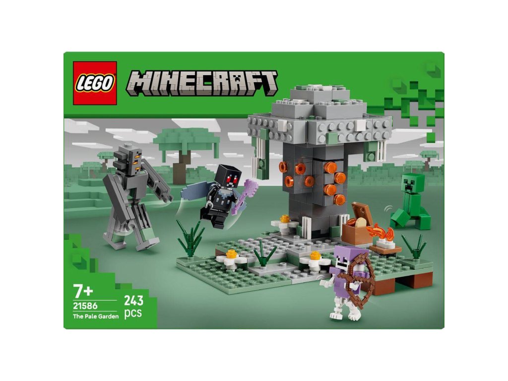 Se stavebnicí Bledá zahrada pro holky a kluky od 7 let hráči vstoupí do jednoho z nejpodivnějších a nejúžasnějších biomů hry Minecraft®. Figurka Creakinga z kostek LEGO se postaví hrdinnému okřídlenému mothmanovi zatímco Creeper™ a Kostlivec se potulují po bledé zahradě. Bledý dub je pokrytý mechem a květy a obsahuje vzácnou pryskyřici a vzácné srdce, které děti můžou získat buď odstraněním kůry, nebo stisknutím tlačítka na zadní straně stromu, které srdce vysune. Minifigurka Mothmana má krovková křídla a drží kouzelnou sekeru a minifigurka Kostlivce má diamantovou zbroj a luk. Mezi další doplňky, které podněcují fantazii, patří truhla, hrudky pryskyřice, táborák a vepřová kotleta.