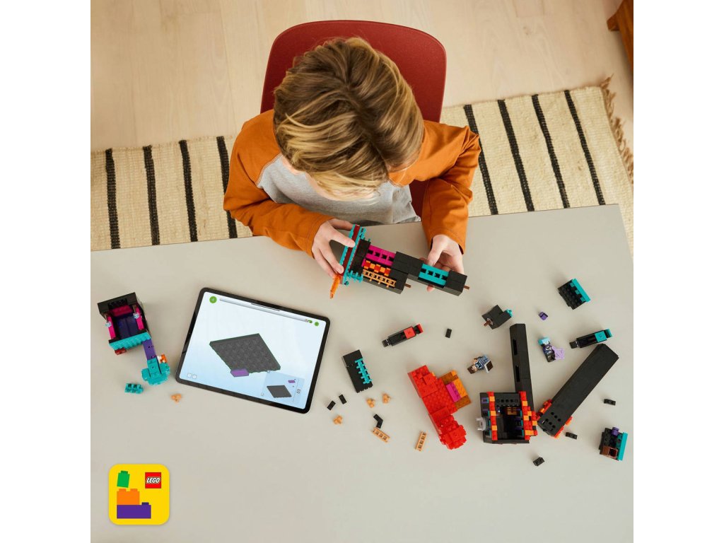 Kvalitní stavebnice Endermanova věž je ideální pro děti, které mají rády kreativní hraní a videoherní dekorace. Díky modulárnímu designu lze model přestavět a užít si nekonečné možnosti hraní a vystavování. Tato stavebnice LEGO Minecraft poslouží jako ideální dárek pro kluky a holky od 9 let. Hlavním modelem je věž ve tvaru Endermana s portálem do Netheru v hlavě, balkony na ramenou a 2 místnostmi s pracovním stolem, zaklínacím stolem a úložným boxem na perly z enderu. Vylezte po žebříku po noze modelu, prohlédněte si paže modelu, které jsou plně pohyblivé, a venku si prohlédněte prvky podivného a karmínového lesa. Stavebnice obsahuje minifigurku dimenzionálního obránce, nájezdníka říše a 2 Endermanů a 2 figurky mobů endermit. Mezi zbraněmi najdete kuši, netheritový meč a štít z Minecraftu. Endermanovu věž lze přestavět na 2 barevně odlišené pevnosti, což se skvěle hodí na PvP hry (hráč proti hráči). Stavějte model s aplikací LEGO Builder. Stavebnice obsahuje 867 dílků.