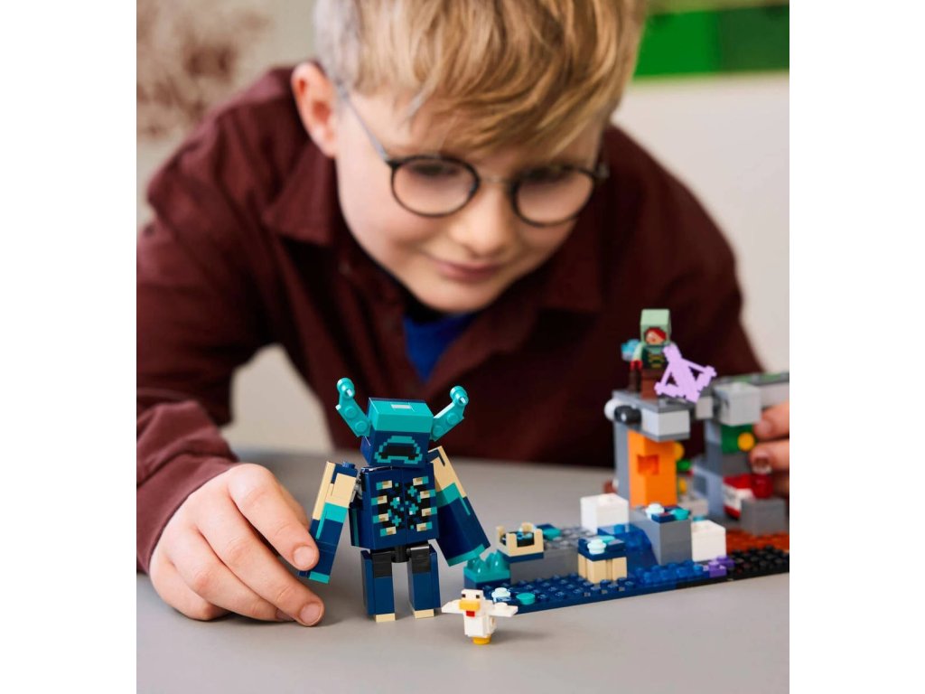 Se stavebnicí Setkání se Strážcem se hráči Minecraftu vydají na akční důlní dobrodružství v hluboké, temné zarostlé jeskyni. Tato kreativní sběratelská stavebnice Minecraft pro kluky i holky představuje skvělý dárek k narozeninám, Vánocům nebo jakékoli jiné příležitosti pro děti od 7 let. Tato všestranná stavebnice LEGO se odehrává v bujné jeskyni se sběratelskými diamanty a ametysty a obsahuje minifigurku tichého lovce ze světa Minecraft, slepici a velkou sestavitelnou figurku Strážce Minecraft s pohyblivou hlavou, rukama a nohama. Mezi herní funkce modelu patří ručně aktivovaný výbuch TNT a padající kámen. Mezi doplňky najdete také uzdravující zlatou mrkev a lektvar. Pro více digitální zábavy si děti můžou své modely přibližovat a otáčet ve 3D v aplikaci LEGO Builder. Stavebnice se skládá z 238 dílků.