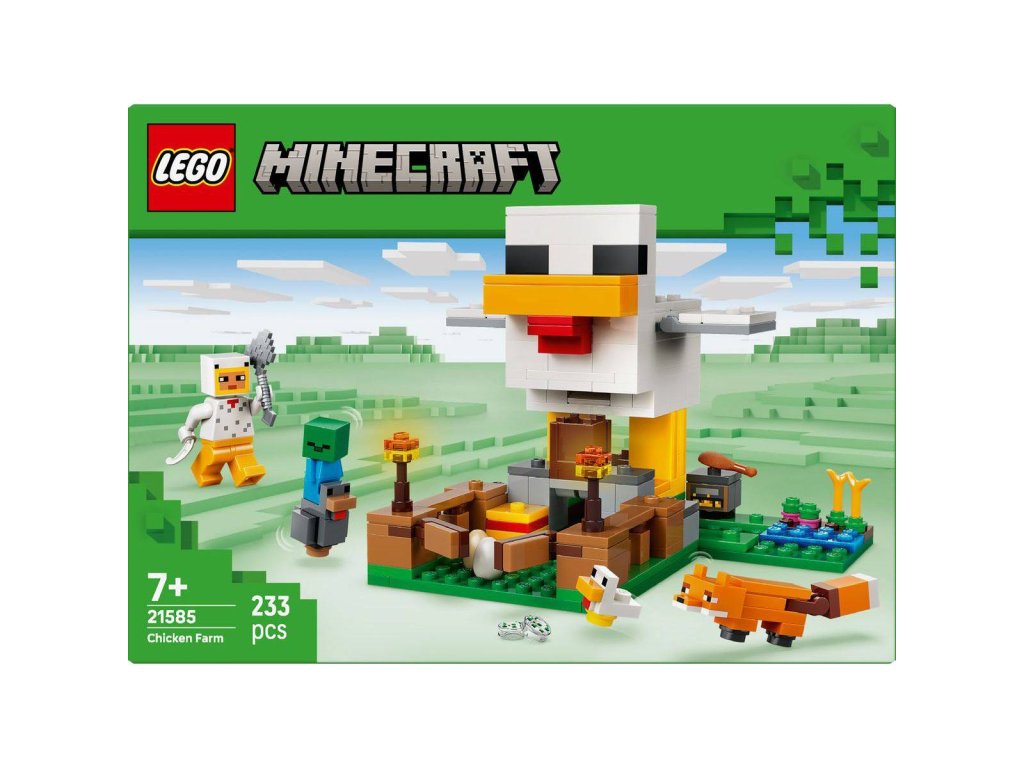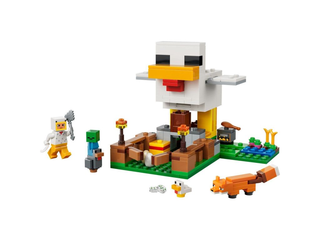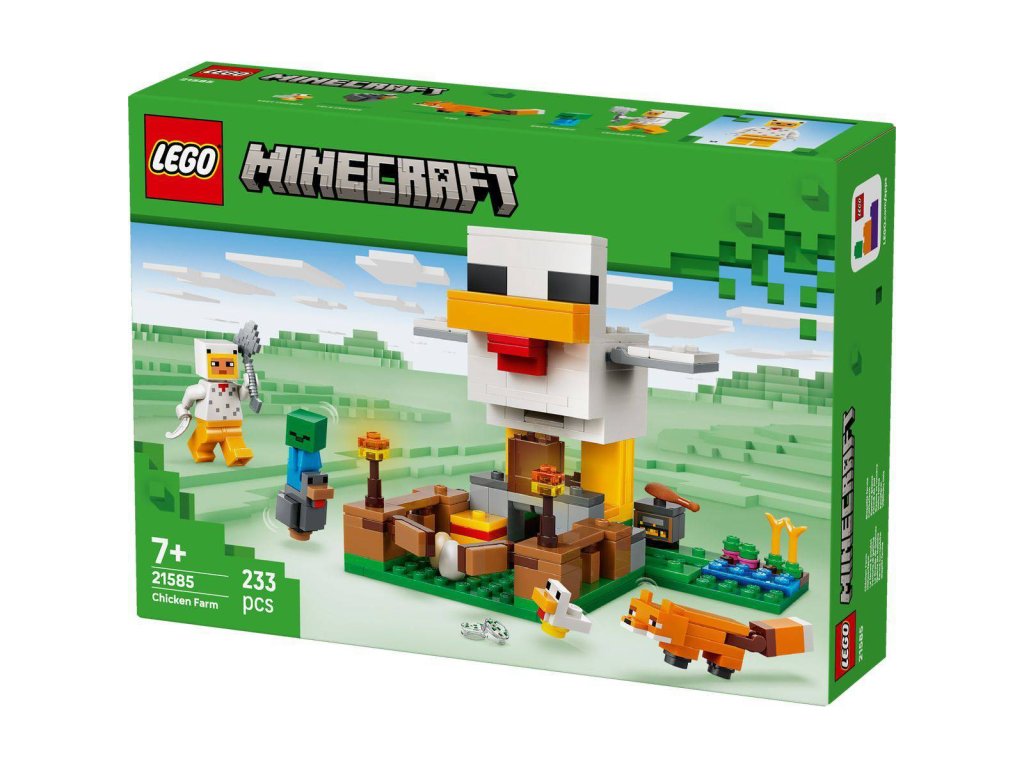 Pečujte o kuřata a starejte se o úrodu se stavebnicí Slepičí farma pro holky a kluky od 7 let. Tato stavebnice pro děti vyzývá malé gamery, aby se postarali o studené kuře a kuřátko s minifigurkou kuřecího fanouška a chránili je před liškou (která ráda jí studená kuřata) a malým zombie (které rádo jezdí na kuřatech). Model kurníku má tvar slepice, pohyblivá křídla a v přední části nechybí výběh s otevírací bránou. Obří slepice snáší vejce v zadní části a ze zobáku se jí sypou semínka do nádoby, která se naklání dopředu, aby se malé slepice mohly nakrmit. Mezi zábavné doplňky patří pochodně, seno, udírna, 2 vejce, 2 balíčky semínek, kuřecí stehno, pírko a sekera.