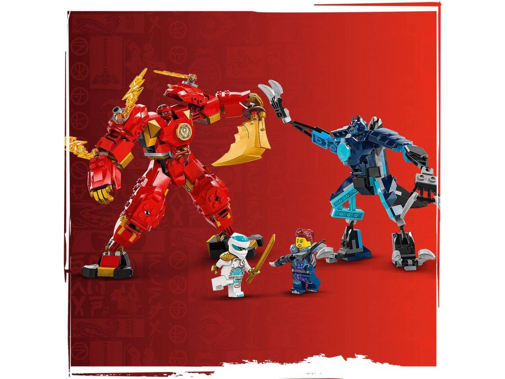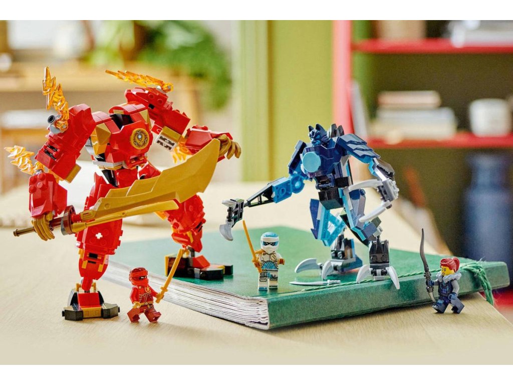 Děti od 7 let si se stavebnicí Kaiův živelný ohnivý robot připomenou své oblíbené scény z 2. řady televizního seriálu NINJAGO Dračí povstání. Robot má pohyblivé končetiny, které lze naklánět a otáčet do dramatických bojových póz, kokpit pro minifigurku nindži a velký zlatý meč, který se bude hodit v bitvách proti robotovi vlčího klanu.