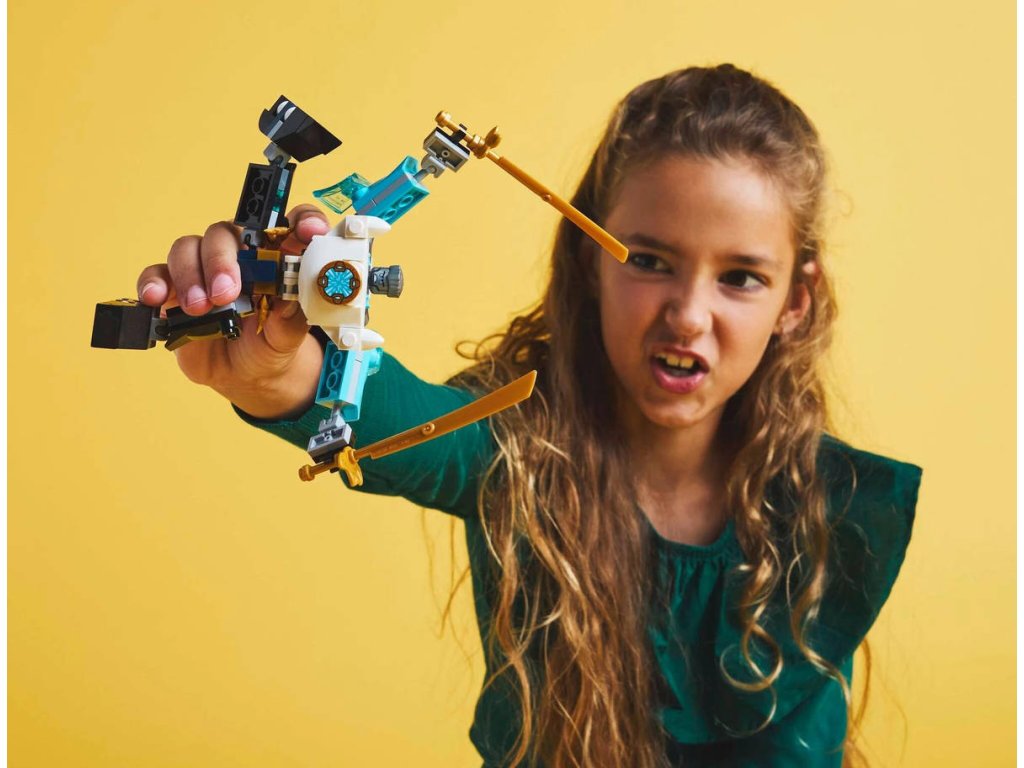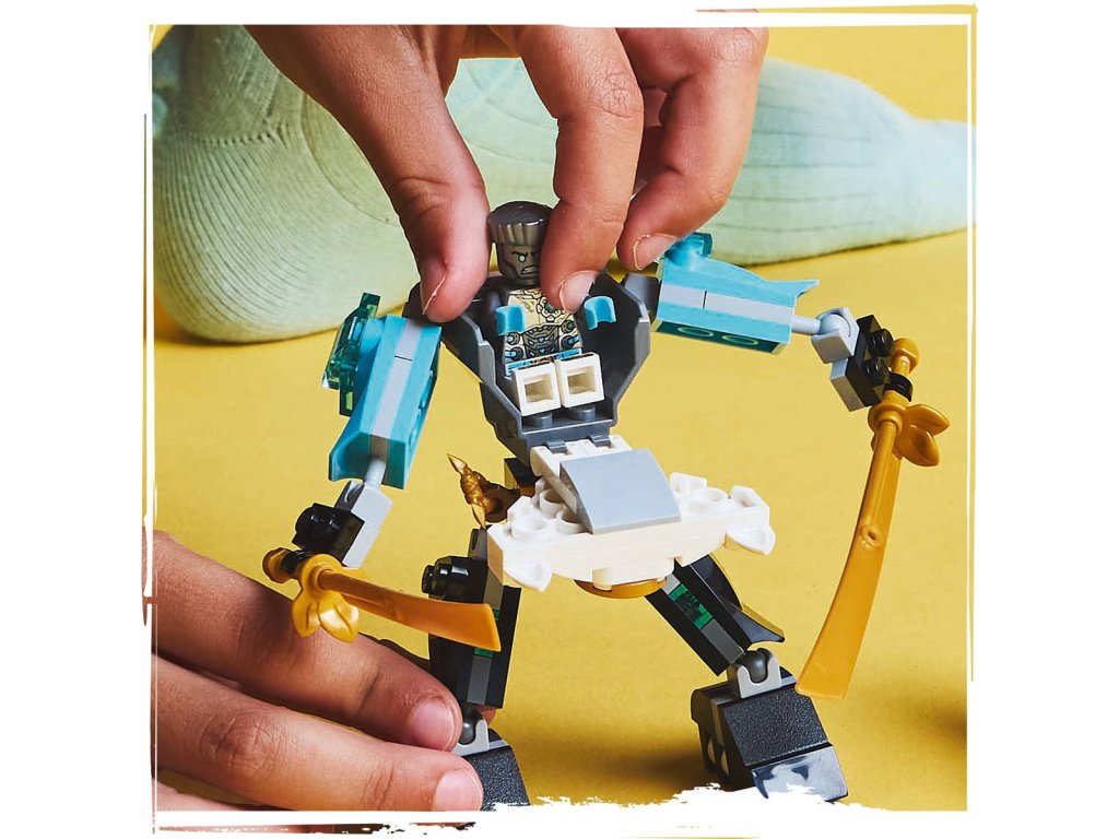 Se stavebnicí LEGO NINJAGO Zaneův bojový robotický oblek si kluci a holky od 6 let připomenou akční scény ze 3. řady televizního seriálu NINJAGO Dračí povstání. Tato stavebnice pro děti obsahuje robota NINJAGO s pohyblivými pažemi, nohama a rukama, horní část těla, kterou lze otáčet o 360 stupňů, otevírací trup s místem pro minifigurku a 2 velké meče. Tato stavebnice LEGO obsahuje 3 minifigurky postav NINJAGO: Zanea se 2 šurikeny, Wyldfyre s křišťálovou katanou a Drixe, Mistra rojů ze Zakázané pětky, se 2 srpy, se kterými si děti užijí hodiny dobrodružství ve sloučeném světě NINJAGO.