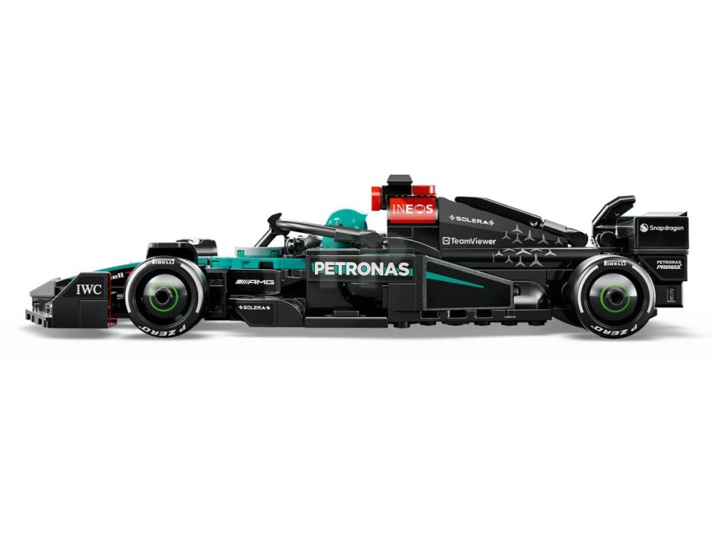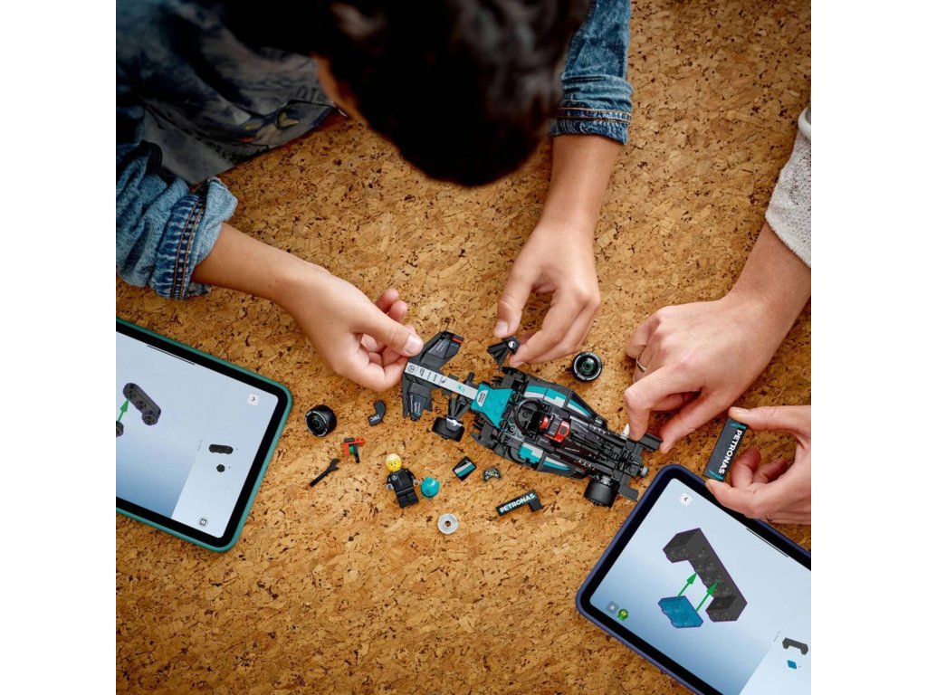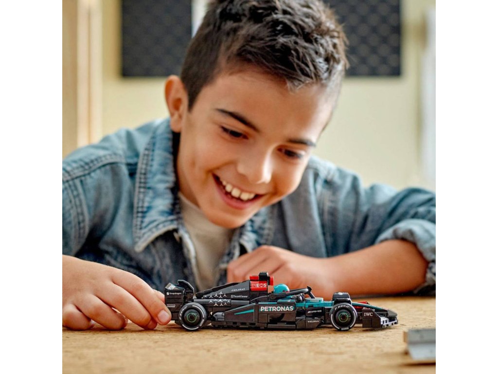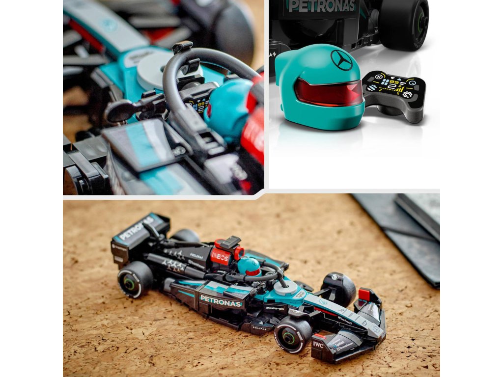 Kluci a holky od 10 let si postaví a vystaví úžasné sběratelské závodní auto Mercedes-AMG F1® W15. Elegantní závodní vůz Mercedes-AMG F1 pro děti a fanoušky Mercedes-AMG PETRONAS F1 Team má řadu designových prvků vozu, který se v roce 2024 zúčastnil Mistrovství světa Formule 1. Tento model vozu F1 má kokpit, který lze otevřít zvednutím svatozáře, zadní křídlo, rovnoběžníkovou nápravu, polepy sponzorů a širší zadní pneumatiky s nápisem „Pirelli“. Součástí sestav itelného modelu je také minifigurka jezdce v outfitu Mercedes-AMG PETRONAS F1 Team s okřídlenou helmou, kterou můžete umístit do kokpitu a šlápnout na plyn.