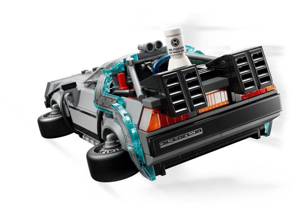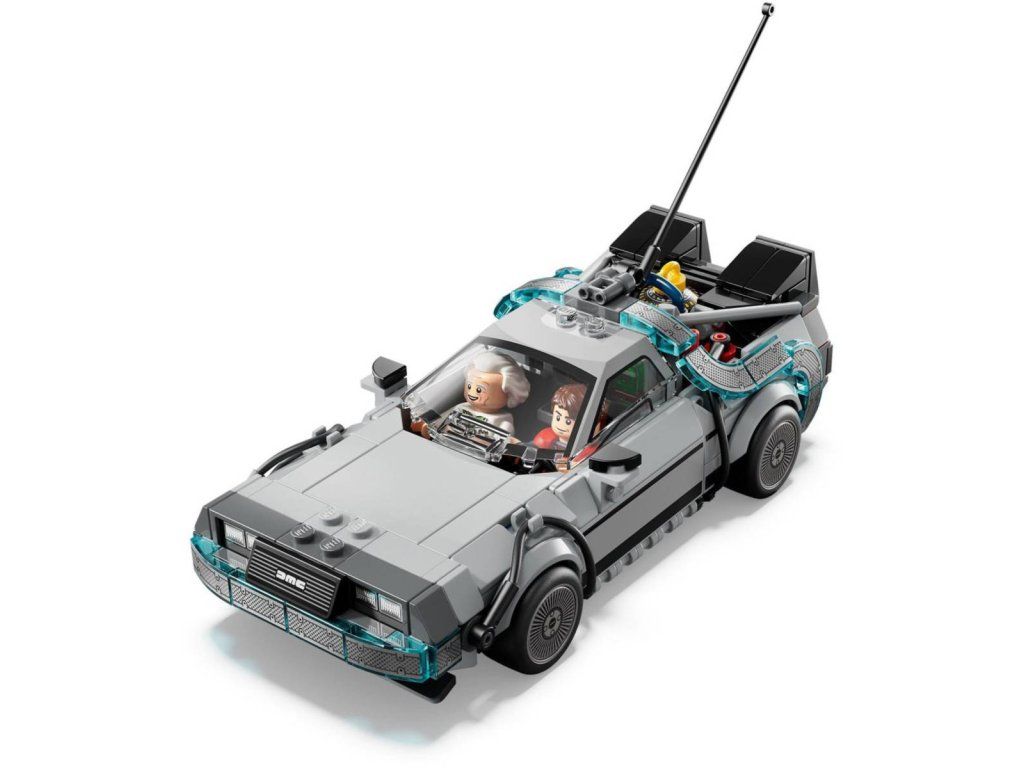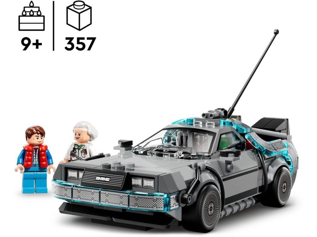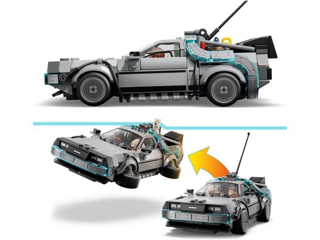 Stavebnice Stroj času z filmu Návrat do budoucnosti umožňuje dětem od 9 let sestavit si výstavní model inspirovaný oblíbenou filmovou sérií, se kterým si navíc užijí akční hraní. Model auta z kostek obsahuje spoustu známých detailů inspirovaných filmovou předlohou. Postavte si kultovní vůz s hromosvodem a kalifornskou poznávací značkou z prvního filmu a pak model přestavte na létající verzi z druhého filmu se zařízením Mr. Fusion, oranžovou poznávací značkou a bočními koly. Obě verze mají zadní větrací otvory, kokpit, proudový kondenzátor a časový kalkulátor. Stavebnice rovněž obsahuje dvě minifigurky filmových postav: doktora Browna a Martyho McFlyema, které lze posadit do kokpitu a znásobit tak zábavu při hraní.