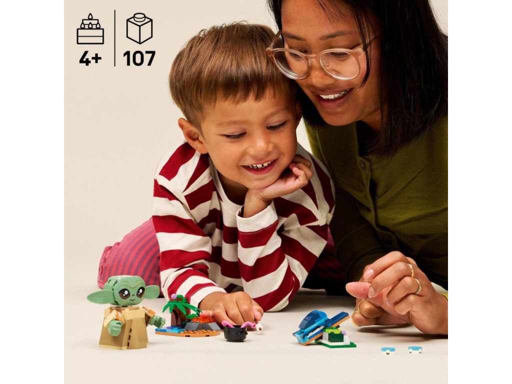 Dopřejte dětem od 4 let inspirativní první zážitek ze stavění a hraní ve světě LEGO® Star Wars™ se stavebnicí Groguova usedlost. Skvělý dáreček pro kluky a holky v předškolním věku, a fanoušky Star Wars. Model obsahuje snadno sestavitelnou pohyblivou figurku Grogua, sorganskou žábu, dva miniaturní modely a autentické doplňky. Vystřelte sorganskou žábu pomocí katapultu. Připomeňte si scény ze seriálu Star Wars: Mandalorian™ u ohniště s hrncem, dvěma chapadly, marshmallow na klacku a dvěma modrými makronkami. Jedna z makronek se perfektně vejde Groguovi do bříška. Jednoduchý obrázkový návod této stavebnice představuje ideální řešení pro děti, které se právě učí číst.