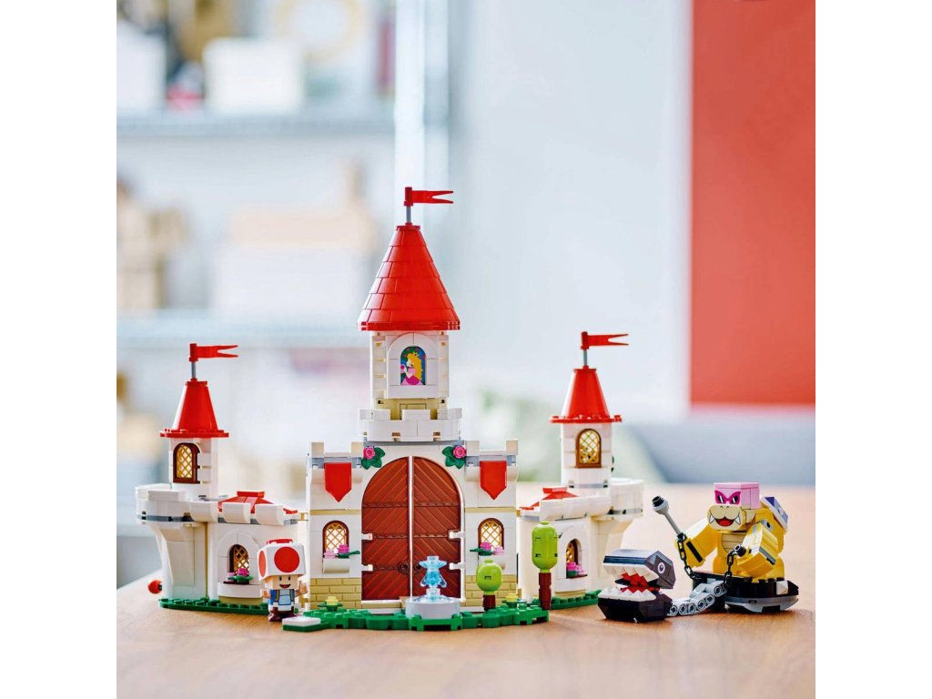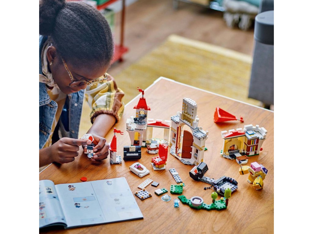 Se setem LEGO Super Mario Bitva s Royem na hradě Peach se děti mohou těšit na hodiny objevování, bojování a přehrávání příběhů ze slavné lokality ze světa hry Super Mario. Tento set s postavičkami Nintendo představuje skvělý dárek pro holky, kluky a milovníky videoher od 7 let a součástí je model hradu princezny z kostek LEGO, který lze otevřít pro snadnější přístup během herních dobrodružství. Má snadno přestavitelné zdi, které se při obléhání rozpadnou, věž, katapult, otočný trůn a fontánu na zahradě. Součástí jsou také 3 figurky LEGO Super Mario: Roy (poprvé v setu LEGO Super Mario), Chain Chomp a Toad. Přidejte figurku LEGO Mario, LEGO Luigi nebo LEGO Peach (ze setů 71439, 71440 a 71441 – prodávají se samostatně) a užijte si interaktivní hraní. Pomozte jim porazit Roye a převzít kontrolu nad jeho Chain Chompem, najděte skryté akční prvky a odemkněte digitální reakce, jako je klavírní hudba. Návod na stavění najdete v krabici a v aplikaci LEGO Super Mario, která je navíc plná kreativních nápadů na stavění a hraní.