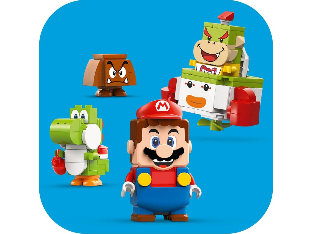 Tento set dětem poskytne hodiny dobrodružství s interaktivním LEGO Mariem, při kterých zažijí třeba bitvu o klaunské auto Bowsera Jr. Set je parádní dárek Nintendo pro kluky, holky a hráče od 6 let a obsahuje interaktivní figurku LEGO Maria a figurky Bowsera Jr., Goomby a Yoshiho, a k tomu navíc 3 modely prostředí. Cestujte od startovacího potrubí k cílové vlaječce, spouštějte digitální reakce od LEGO Maria a cestou sbírejte mince. Pozdravte Yoshiho, porazte Goombu,dupněte na akční kostku s otazníkem, svrhněte Bowsera Jr. a pak odfrčte v jeho Junior Clown Car. Návod na stavění najdete v krabici nebo v doprovodné aplikaci LEGO Super Mario, která slouží jako bezpečná platforma, kde mohou děti sdílet své výtvory, a najdete v ní také originální nápady na stavění a hraní. Rozšiřte herní možnosti tím, že přidáte modely a postavy z tohoto setu k ostatním z rozsáhlé řady LEGO Super Mario.