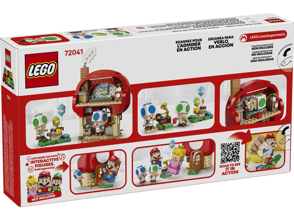 Uspořádejte párty v Toadově domku s touto fantastickou stavebnicí. Úžasný dárek pro kluky, holky a fanoušky od 7 let, který obsahuje propracovaný domek Toada s kuchyní a ložnicí (s obrazem Peachina hradu na stěně) a odnímatelným nábytkem pro snadné hraní. Venku na vás čeká piknikový stůl se sedadly pro figurky Blue Toada a Green Toada, sestavitelný gramofon s otáčecí deskou a doplňky na párty. Přidejte k tomuto setu figurku LEGO Mario, LEGO Luigi nebo LEGO Peach (ze setů 71439, 71440, 71441 nebo 72043 – prodávají se samostatně) a užijte si digitální interaktivní hraní, včetně písniček, které začnou hrát při šlápnutí na akční prvek gramofonu a zvuku zvonku na prahu domu. Návod na stavění této stavebnice Nintendo® LEGO najdete v krabici nebo v aplikaci LEGO Super Mario. Nenechte si ujít další satevbnice LEGO Super Mario (prodávají se samostatně).
