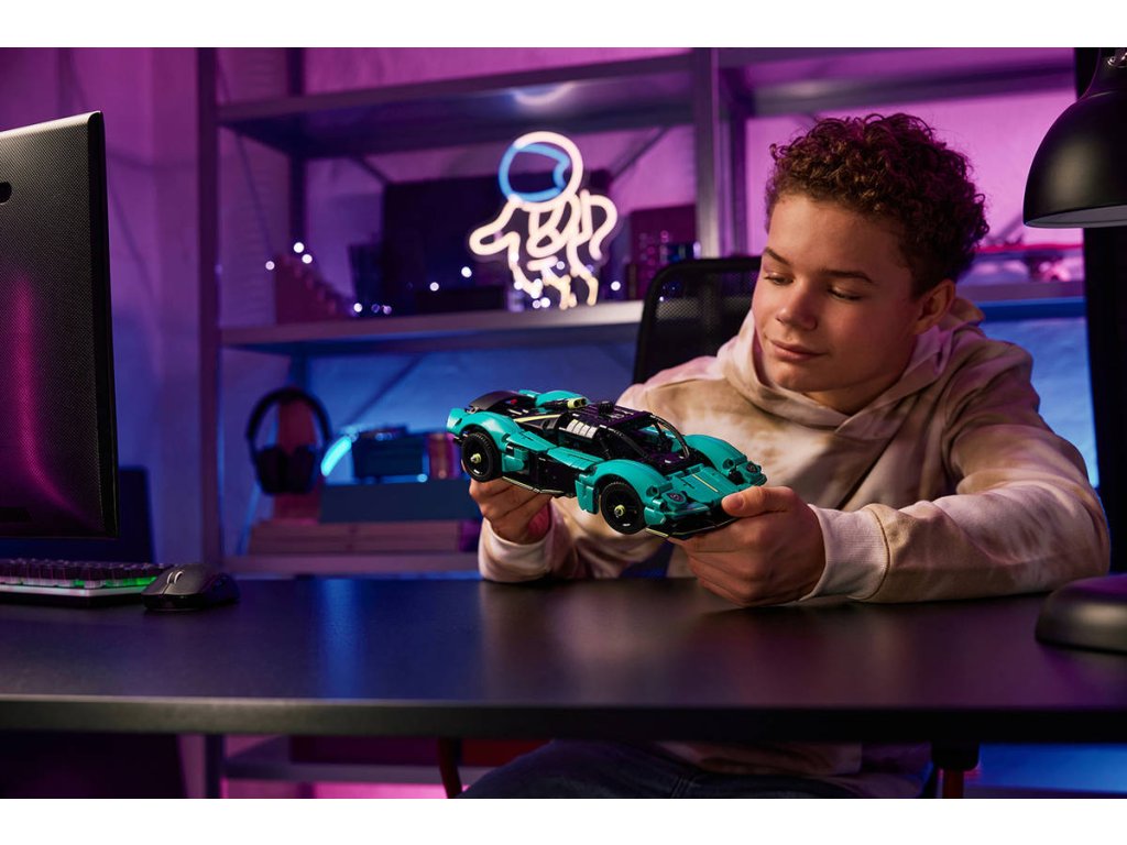 Dopřejte dětem od 9 let napínavý stavitelský projekt s modelem auta Aston Martin Valkyrie. Tato stavebnice, inspirovaná skutečným vozem Aston Martin, potěší milovníky sportovních vozů svým výrazným aerodynamickým designem a poutavou barevnou kombinací. Objevte spoustu funkcí, jako je řízení ovládané knoflíkem na horní straně vozu a výklopné dveře, stejné jako ty na skutečném voze. Nahlédněte pod kapotu a zvedněte kryt motoru, abyste odhalili dvanáctiválcový motor. Prohlédněte si diferenciál a písty, které se pohybují, když se otáčí volant řidiče. Stavebnice LEGO Technic (prodávají se samostatně) se pyšní realistickým pohybem a seznámí mladé stavitele se světem techniky. Stavebnice představuje skvělý dárek pro malé milovníky vozidel. Děti se můžou těšit na intuitivní stavitelské dobrodružství s aplikací LEGO Builder. V ní si lze přibližovat, otáčet modely ve 3D, ukládat stavebnice a sledovat postup. Stavebnice obsahuje 707 díků.