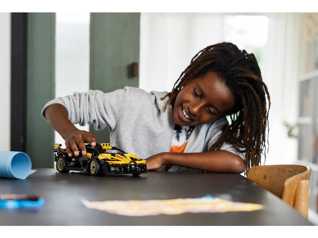 Inspirujte děti od 9 let k sestavení vlastního závodního auta se stavebnicí Bugatti Bolide. Při stavění realistických detailů, jakou jsou funkční motor W16, řízení a nůžkové dveře, si vychutnají