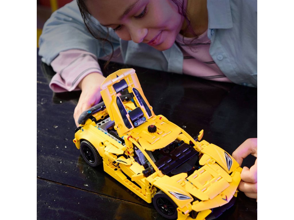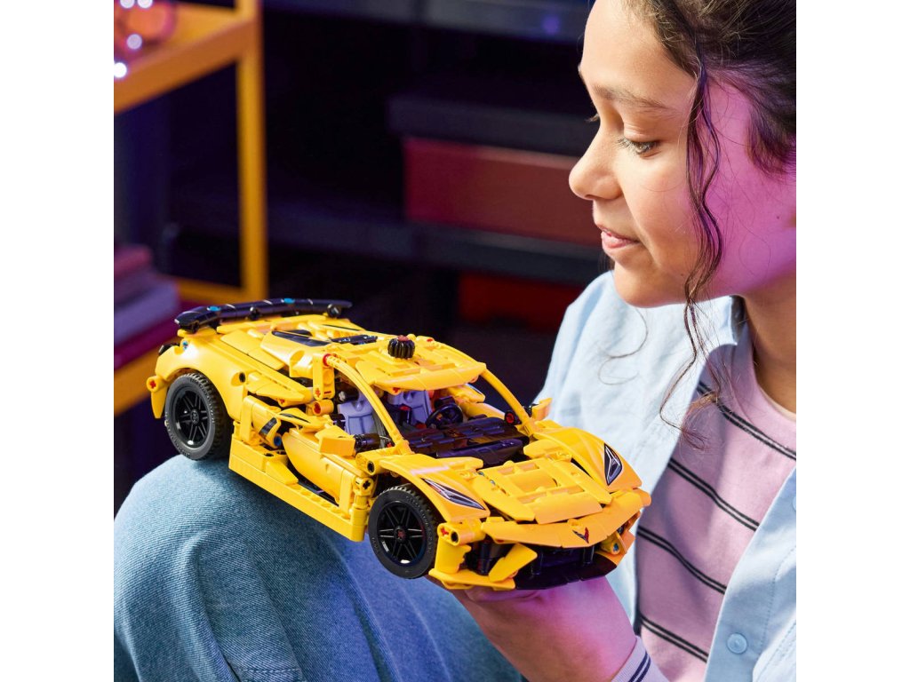 S touto propracovanou stavebnicí auta si děti od 9 let postaví vlastní model Chevrolet Corvette Stingray. Kluci, holky a milovníci rychlých aut si užijí spoustu zábavy při skládání realistických detailů a pak se pustí do prozkoumávání autentických prvků. Obdivujte úžasné barevné schéma vozu a pohybující se 8válcový motor a diferenciál. Pomocí knoflíku řiďte auto, pak otevřete dveře a kapotu a pokochejte se interiérem. Stavebnice vozidel LEGO Technic se pyšní realistickými pohyby, které malým stavitelům LEGO představí svět techniky. Tato stavebnice představuje skvělý dárek pro děti, které milují vozidla LEGO.