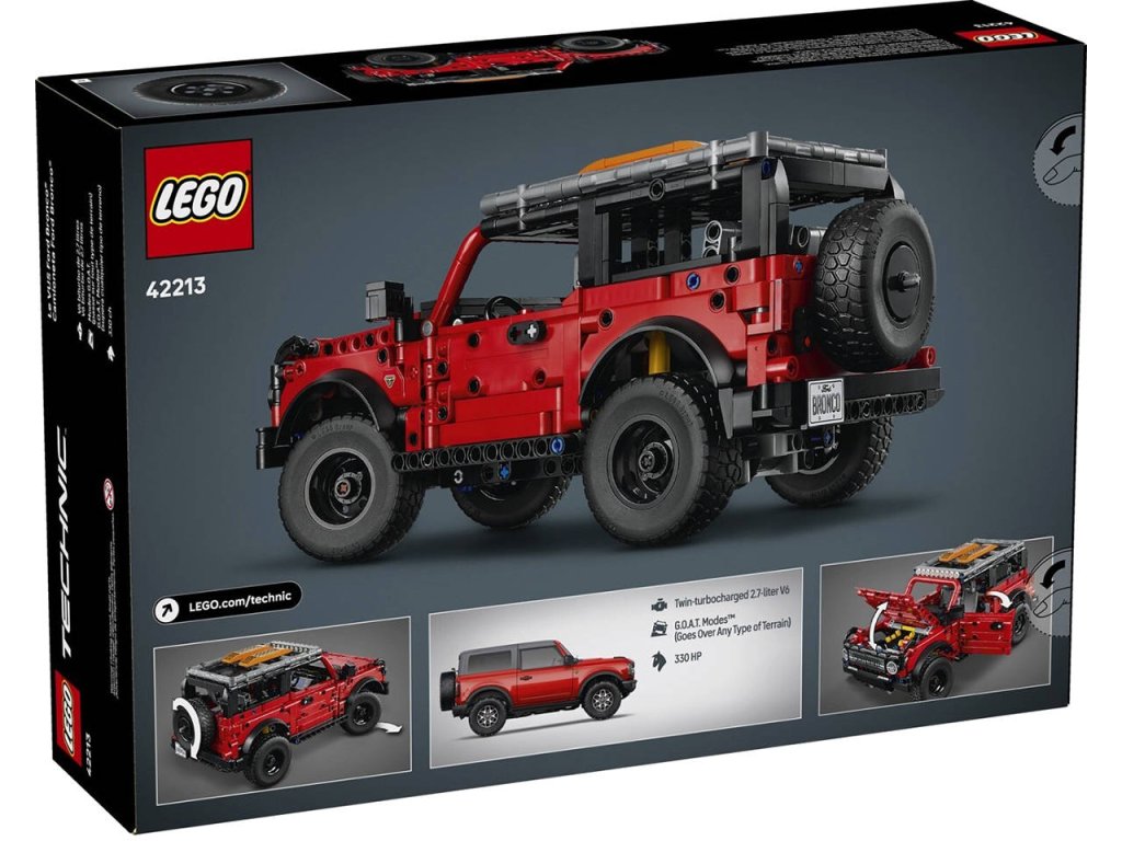 LEGO 42213 - Auto SUV Ford Bronco z produktové řady LEGO TECHNIC. Kvalitní dětská plastová stavebnice, 743 dílků v krabici.