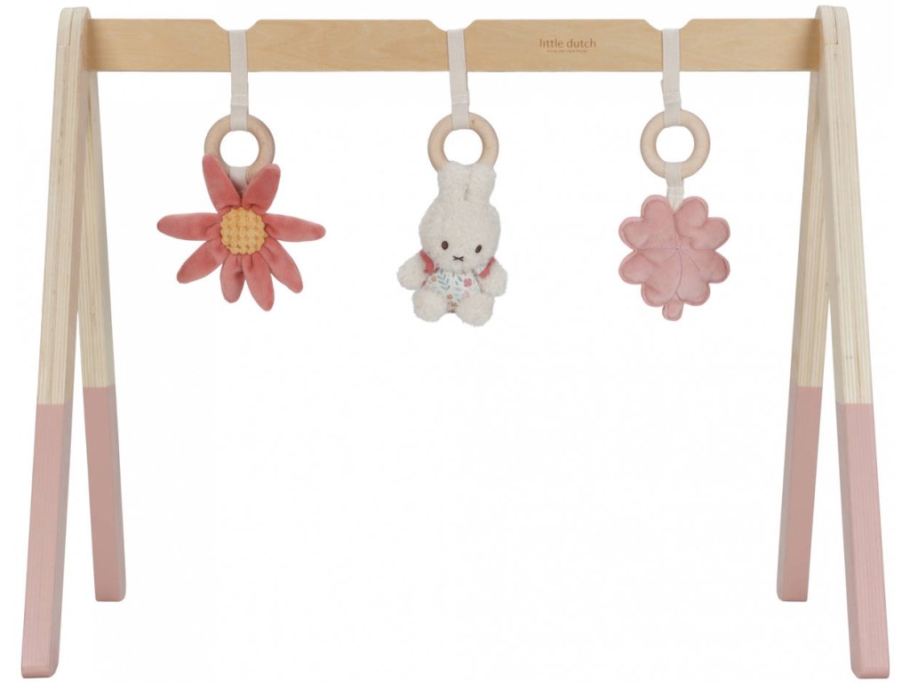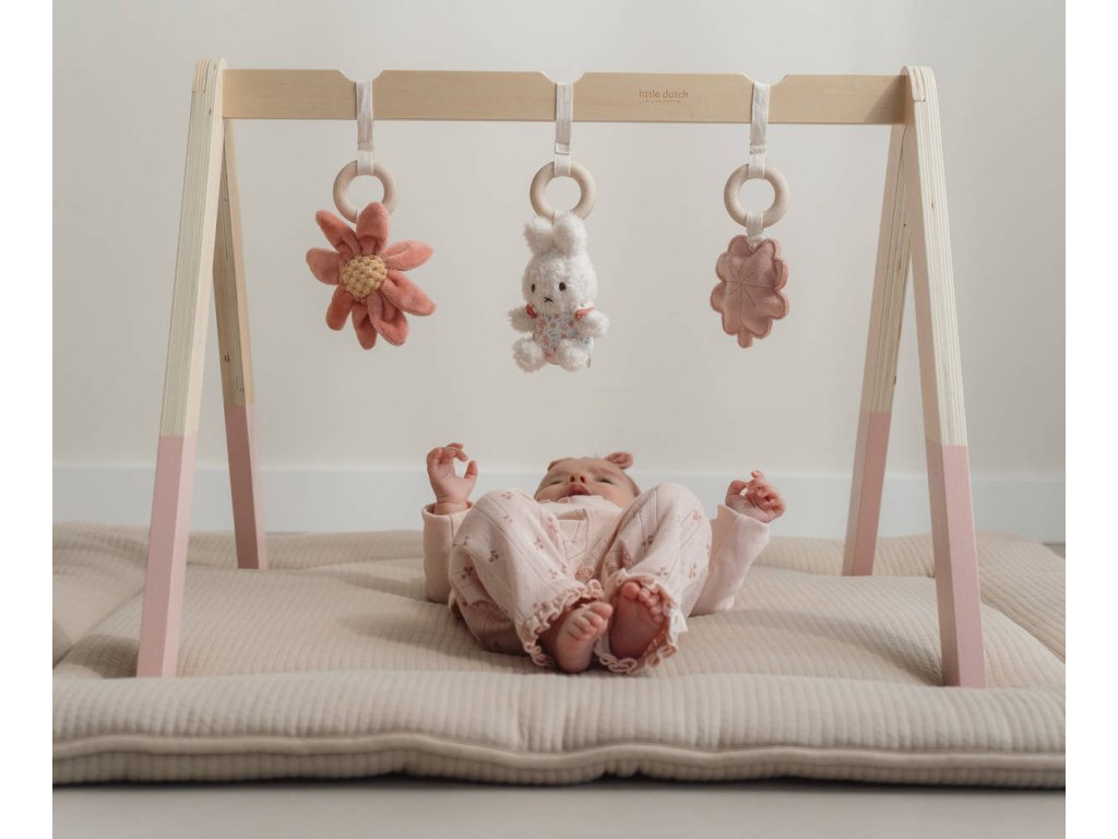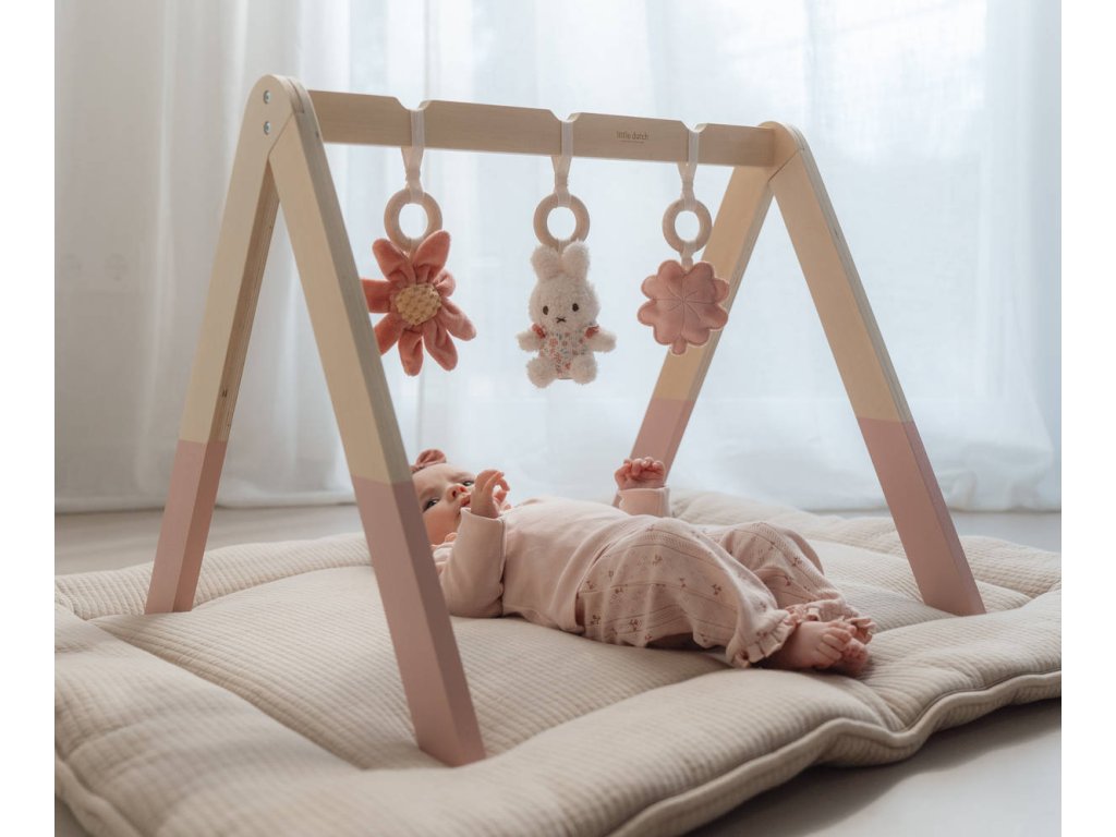 Baby dřevěná hrazdička Miffy Lucky Bottom od Little Dutch, pro miminko. Součástí 3 závěsné plyšové hračky. Růžové provedení, pro holčičku.