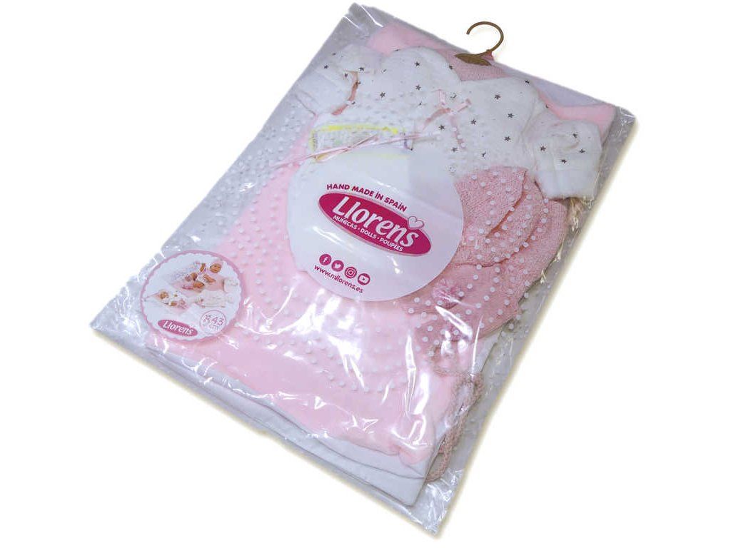 LLORENS Obleček pro panenku miminko New Born vel. 43-44 set 9ks v sáčku