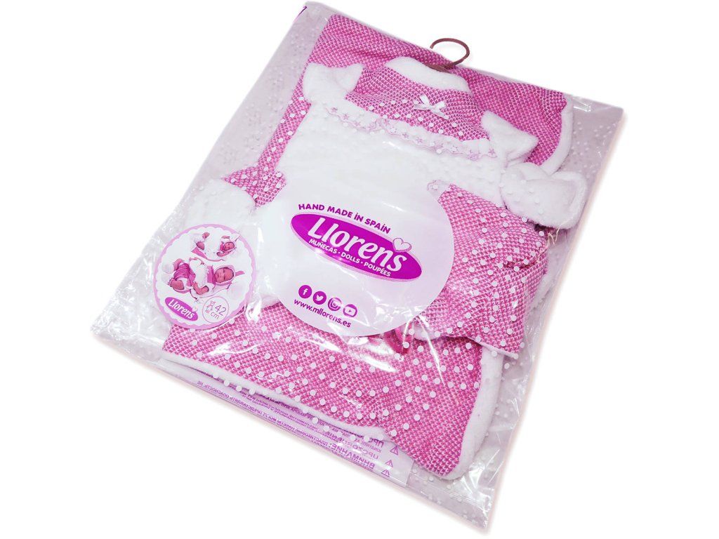 Rozšiřte šatník vaší panenky Llorens o nový trojdílný obleček ve velikosti 40 - 42 cm v růžové barvě. Obsahuje dokonale sladěnou čepičku, body a ponožky. Set doplňků pro panenky Llorens M740-50 navíc s ozdobnou podložkou s ouškama se dodává v praktickém průhledném obalu s ramínkem. Soupravička je určena dětem od 3 let. Vyrábí se ve Španělsku.