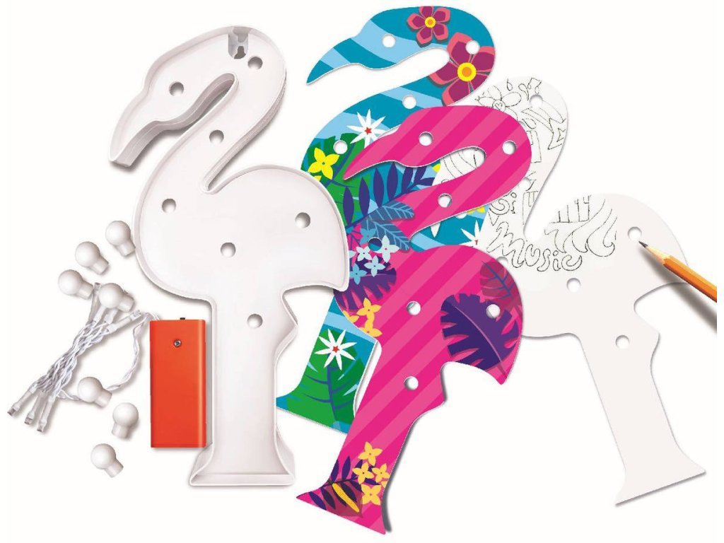 MAC TOYS 4M Dětská lampička plameňák - sestav si své vlastní světlo ve tvaru plameňáka. Může být buď nástěnné nebo volně stojící. Vyměňuj šablony podle nálady nebo stylu pokoje. Hračka na baterie, se světlem.
