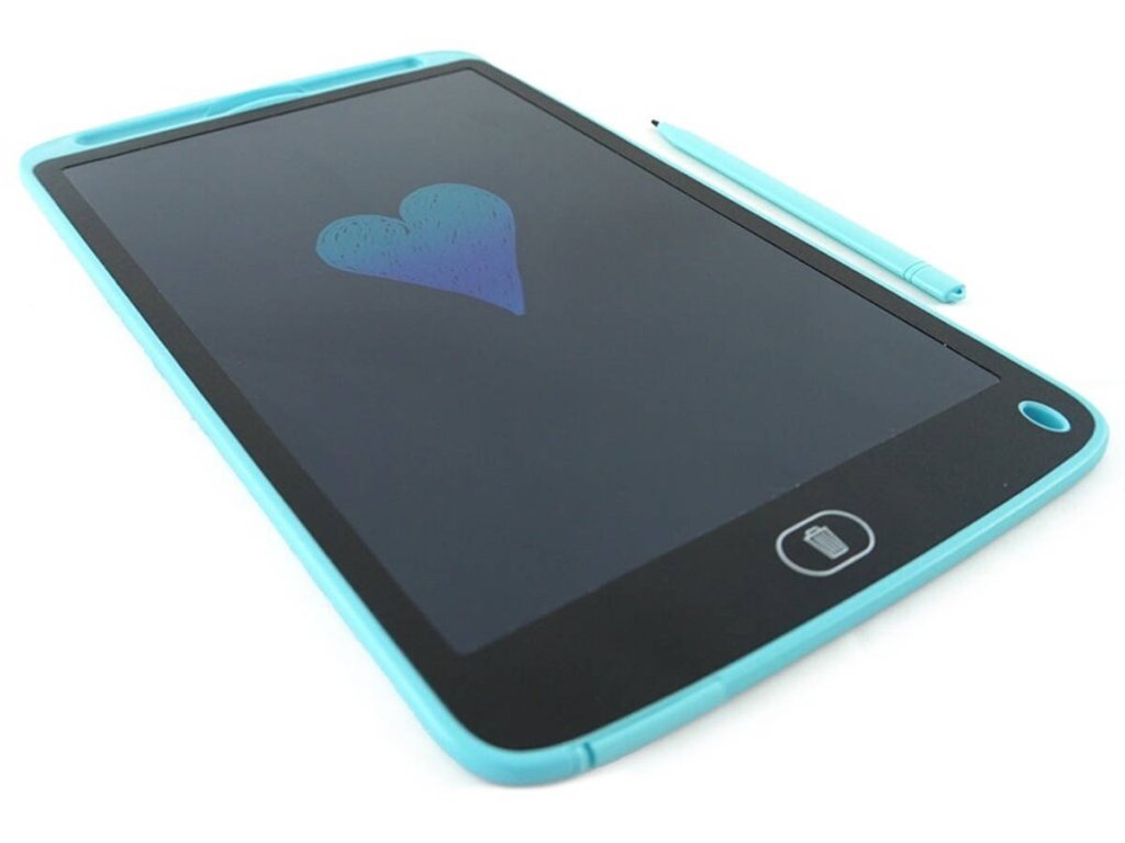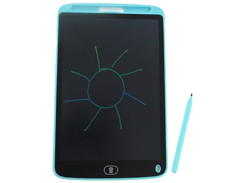 Mac Toys modrá velká kreslící tabulka Plejo - tablet. Přiloženou tužkou nakresli obrázek na tabulku a zmáčknutím jednoho tlačítka jej smaž. Hračka na baterie.
