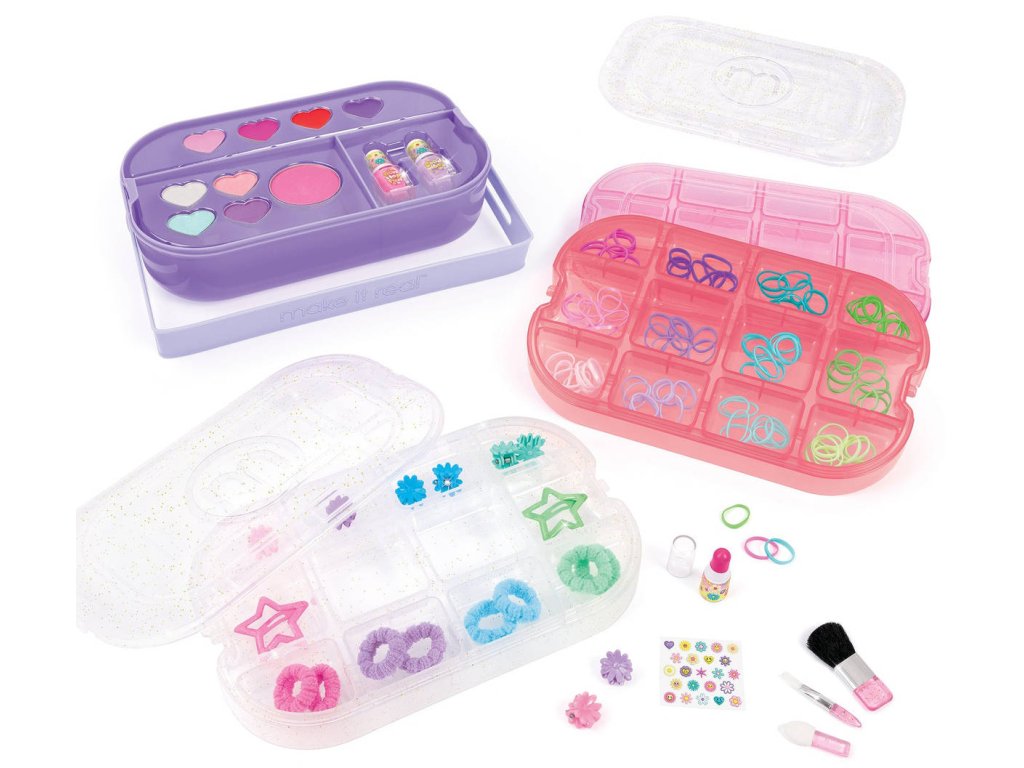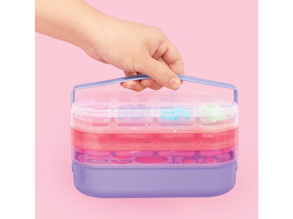 Vezmi svůj styl kamkoli s tímto roztomilým, kompaktním vícepatrovým kufříkem na kosmetiku a doplňky do vlasů! S čtyřmi úrovněmi zábavy při líčení a úpravě vlasů obsahuje tato sada vše potřebné pro vytvoření úžasných looků. Navíc je zde extra místo, kam si mladé návrhářky mohou uložit své oblíbené kousky, takže je ideální pro módní nadšenkyně na cestách.