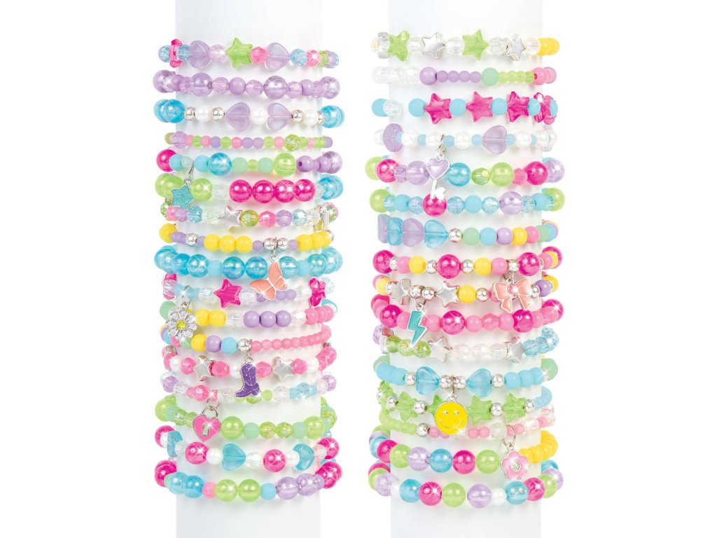 MAKE IT REAL Kreativní box na výrobu až 30ks náramků. Součástí korálky s přívěsky. Výroba dětské bižuterie. Baleno v přenosném úložném boxu.
