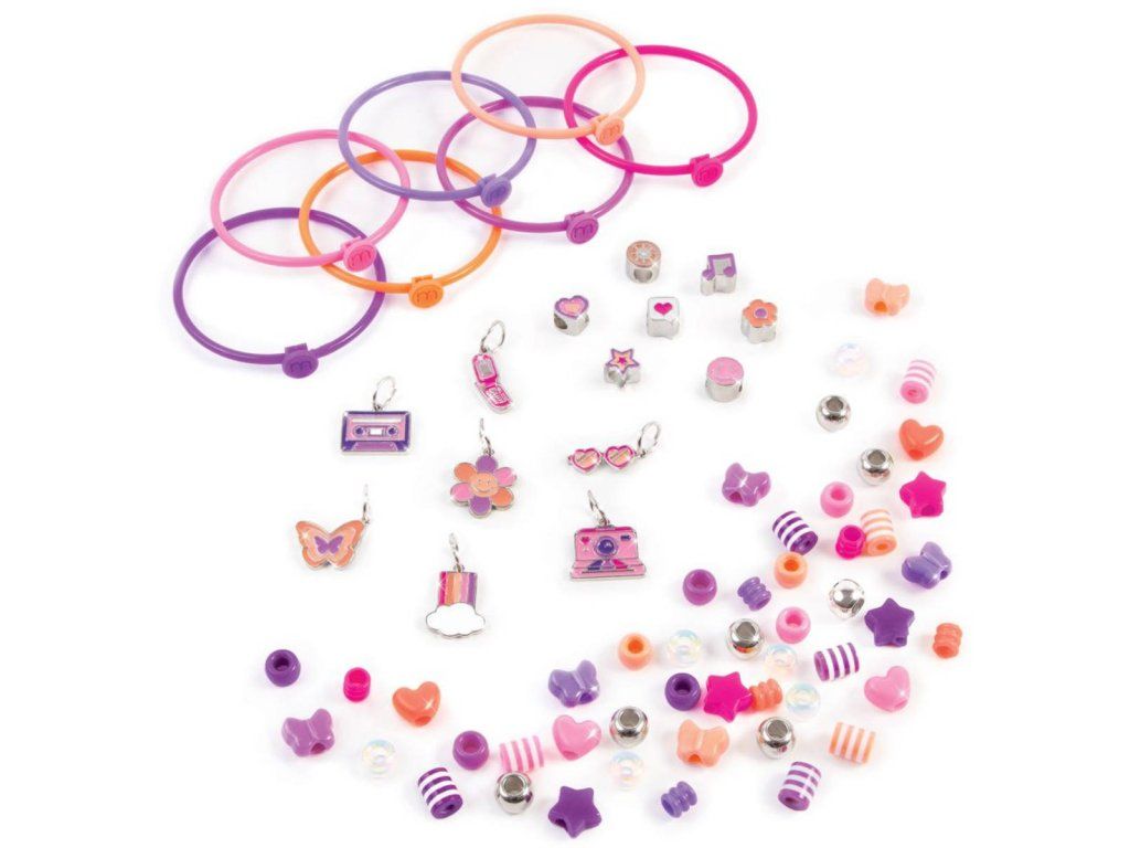 Vytvořte si 7 náramků s módními korálky a kovovými přívěsky. Náramky se snadno otevírají a zavírají, což umožňuje rychlou přeměnu náramku dle nálady. Zábavné retro přívěšky přinášejí mamince nostalgické dny a mladší generaci ten správný nádech trendů 80. a 90. let! Tato DIY sada je skvělým dárkem k narozeninám, k svátku nebo jen tak! Ideální pro děti od 6 let, které chtějí prozkoumat svou kreativitu a vyjádřit svůj styl.