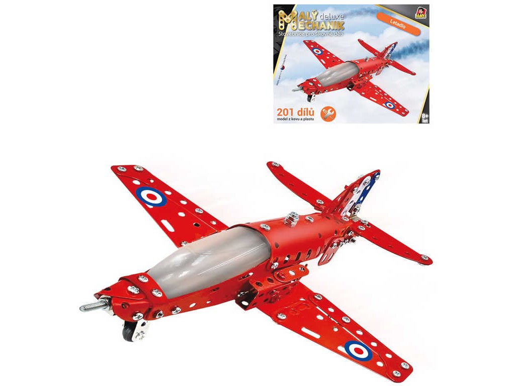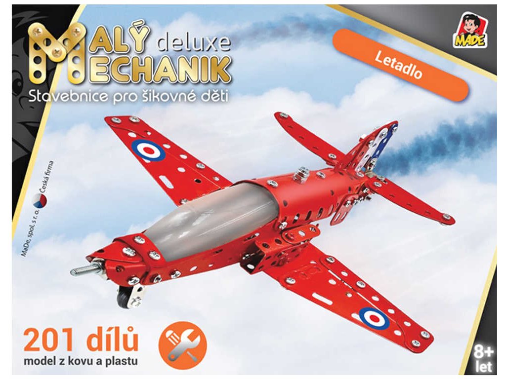 MALÝ MECHANIK Letadlo 201 dílků kovová STAVEBNICE typu Merkur