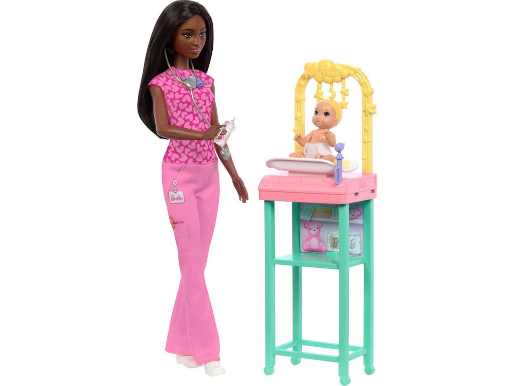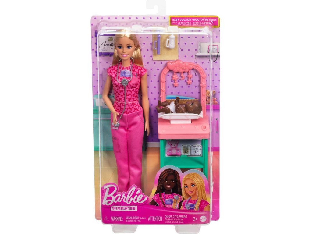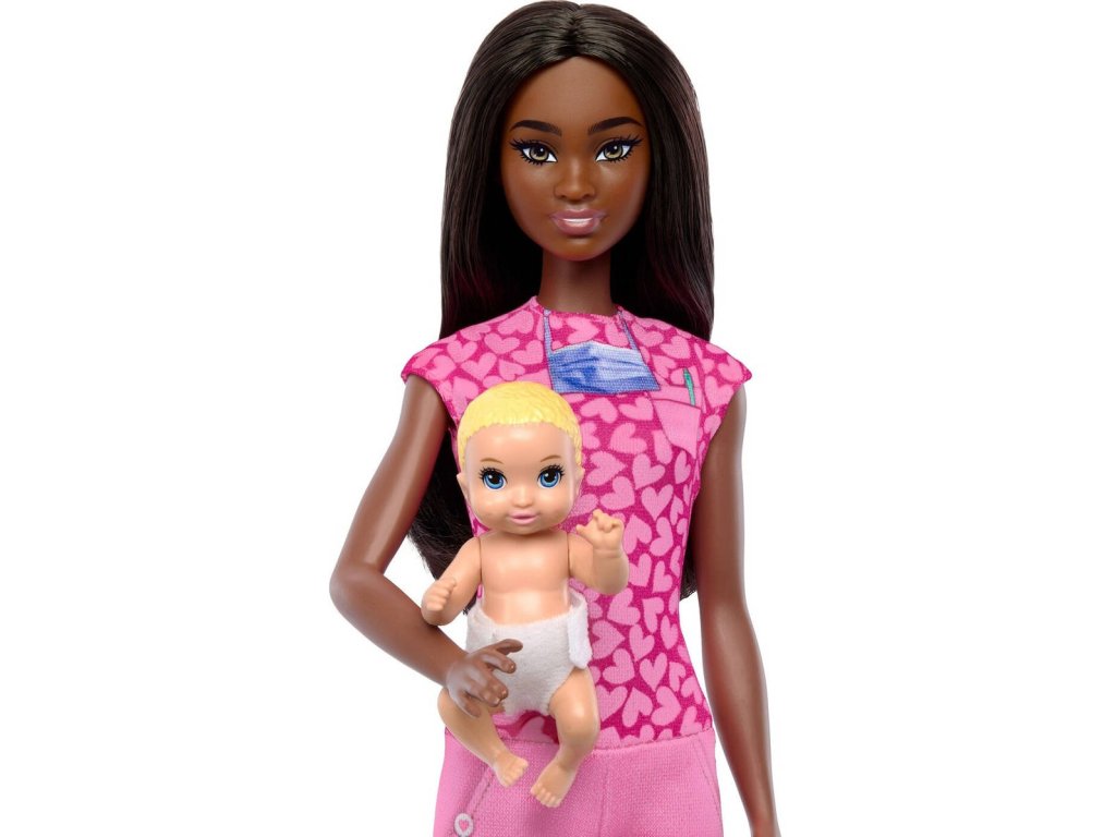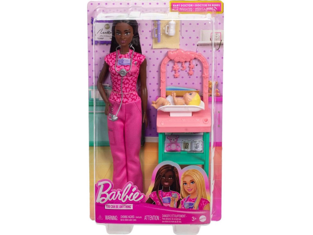 Děti mohou objevovat nejrůznější profesní role, včetně role dětského lékaře! Každá sada obsahuje malé herní prostředí odpovídající zvolené profesi a také panenku Barbie s roztomilým miminkem! Představivost může rozehrát celý svět plný příběhů a kariérních možností s touto inspirativní panenkou, která je připravena motivovat děti, aby se nebály být kýmkoli! Panenka nestojí samostatně. Barvy a dekorace se mohou lišit.