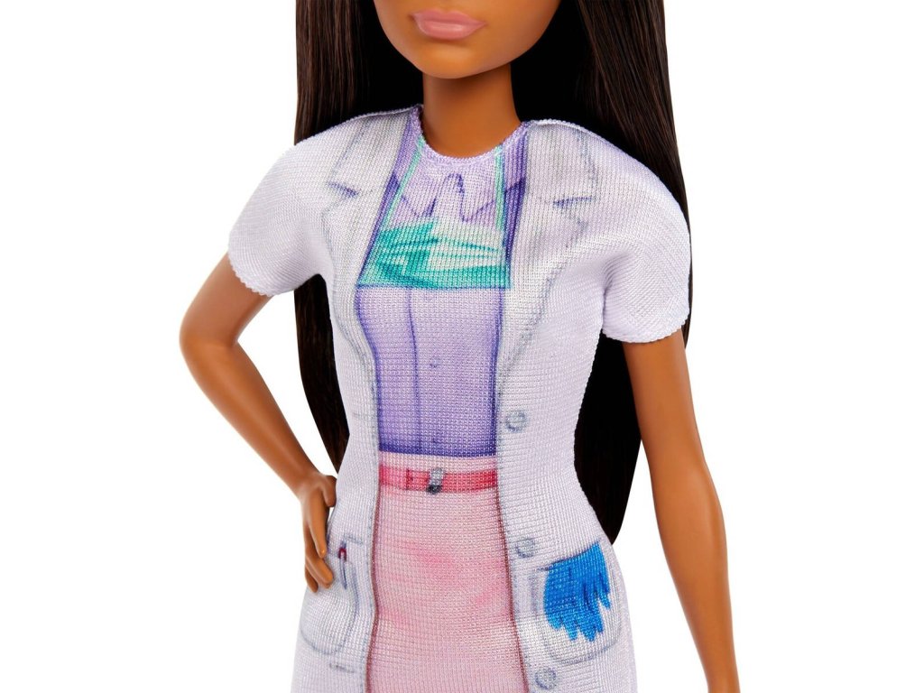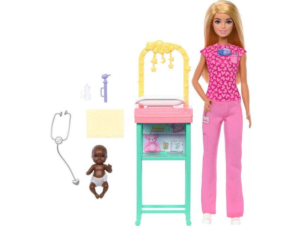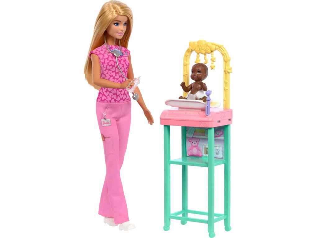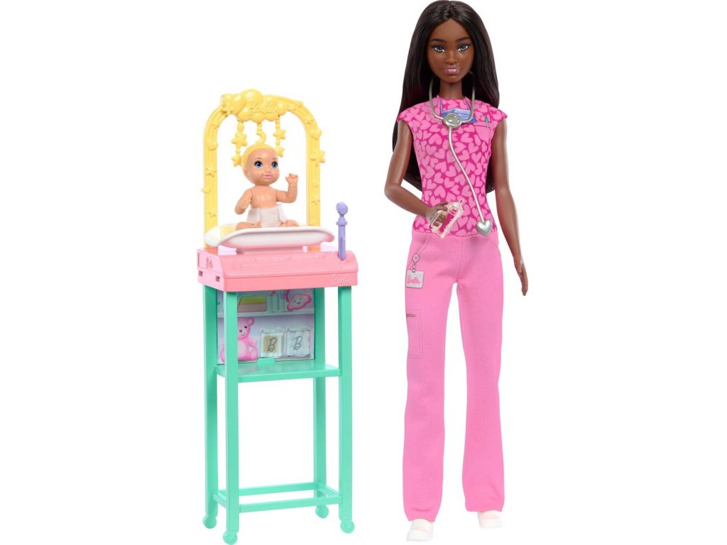 Děti mohou objevovat nejrůznější profesní role, včetně role dětského lékaře! Každá sada obsahuje malé herní prostředí odpovídající zvolené profesi a také panenku Barbie s roztomilým miminkem! Představivost může rozehrát celý svět plný příběhů a kariérních možností s touto inspirativní panenkou, která je připravena motivovat děti, aby se nebály být kýmkoli! Panenka nestojí samostatně. Barvy a dekorace se mohou lišit.
