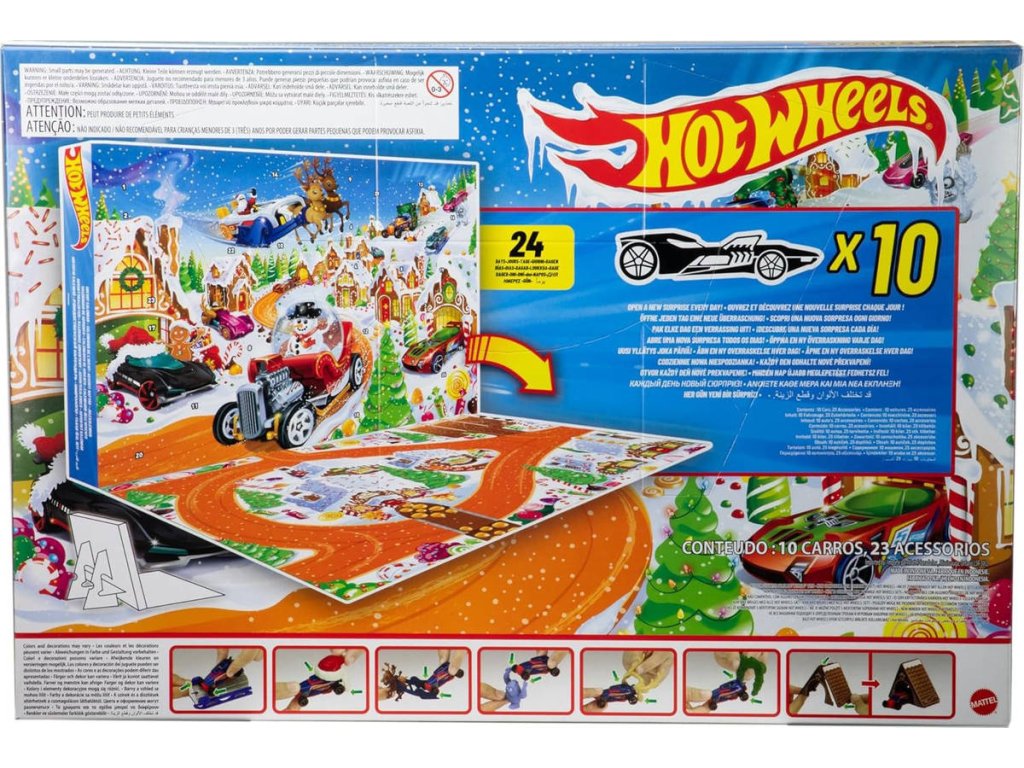 MATTEL HOT WHEELS Adventní rozložitelný kalendář, s herní plochou. 24 okének, součástí autíčka a doplňky.