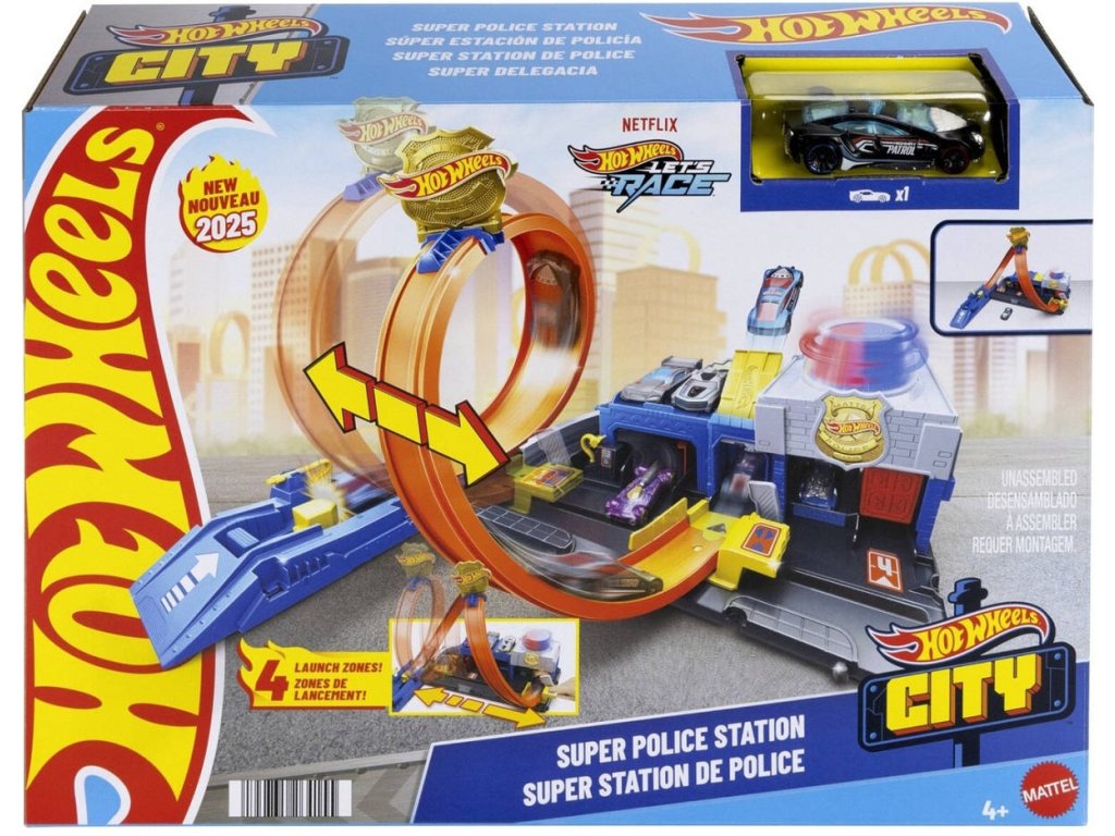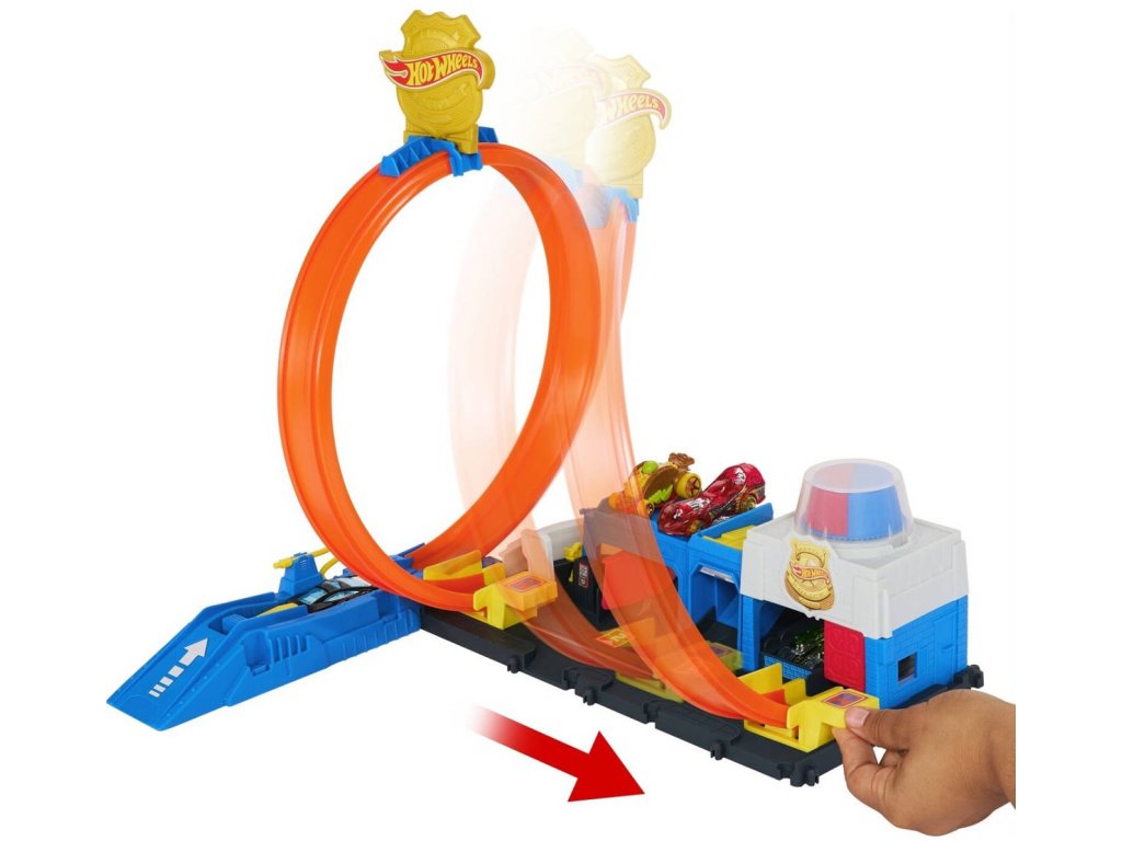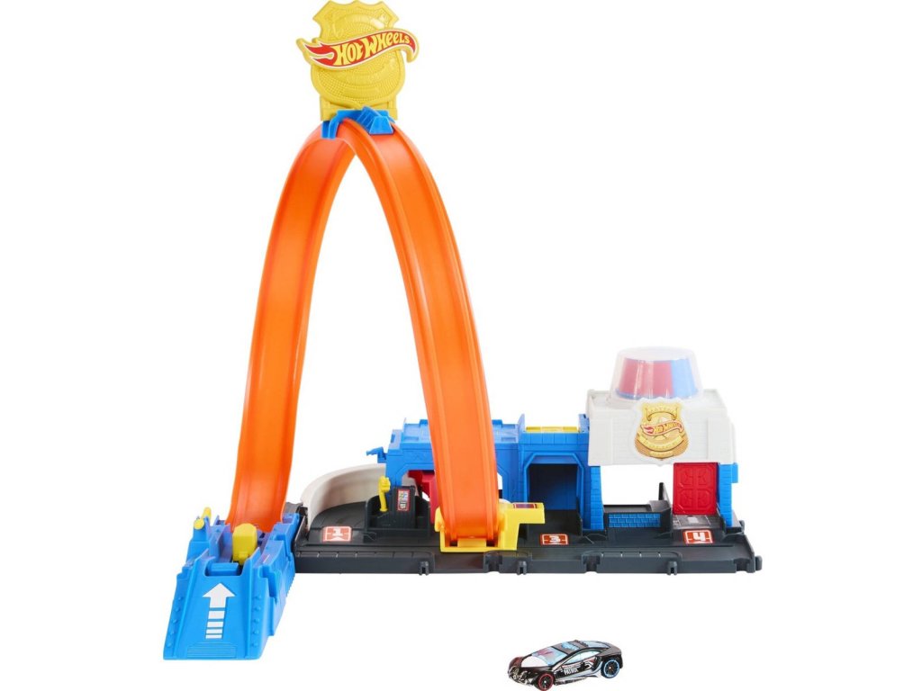 Závoďte přes policejní stanici ve městě Hot Wheels, která je vybavena nastavitelnou smyčkou pro různé způsoby hraní. Děti ji mohou propojit s dalšími sety Hot Wheels a sestavit si tak jedinečné městské dobrodružství.