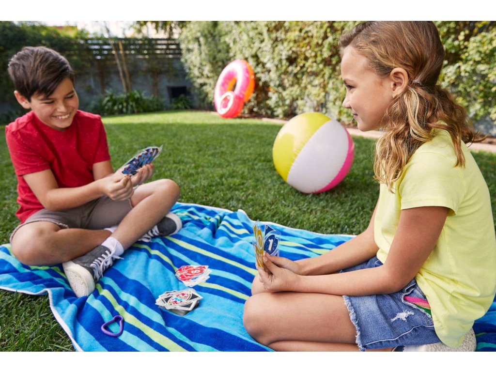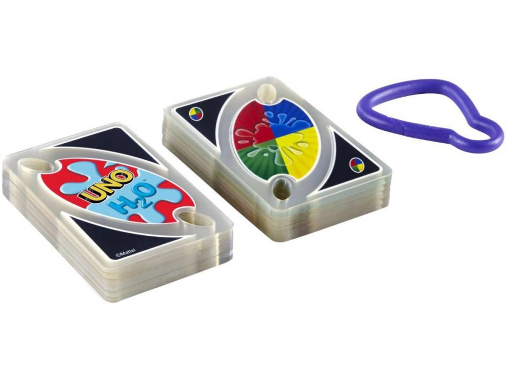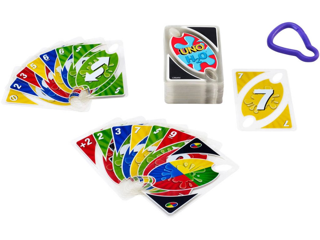 MATTEL Uno karty H2O To Go - společenská karetní hra. Voděodolné kompaktní karty, vhodné k vodě a na cesty.