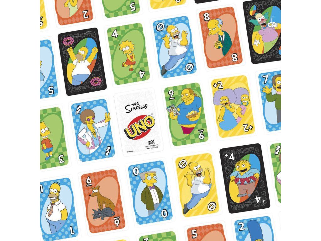 Fanoušci televizního seriálu Simpsonovi ocení tuto verzi karetní hry UNO. Balíček je tematicky zaměřený na tento kultovní seriál a obsahuje grafiku inspirovanou oblíbenými postavami a scénami. Hra UNO Simpsonovi je obohacena o speciální kartu „Woo-hoo! D'OH!“. Tato karta prověří vaše štěstí – buď díky ní zůstanete v bezpečí (Woo-hoo!), nebo vás donutí lízat další karty (D'OH!). Skvělý dárek pro fanoušky Simpsonových a milovníky karetních her.