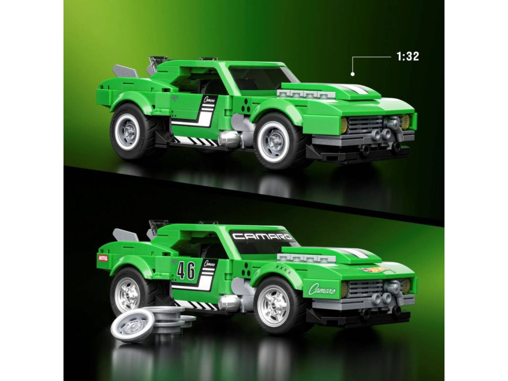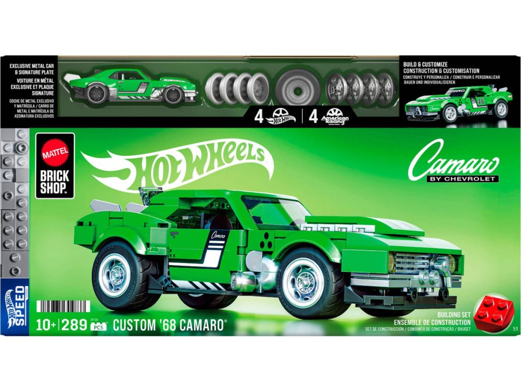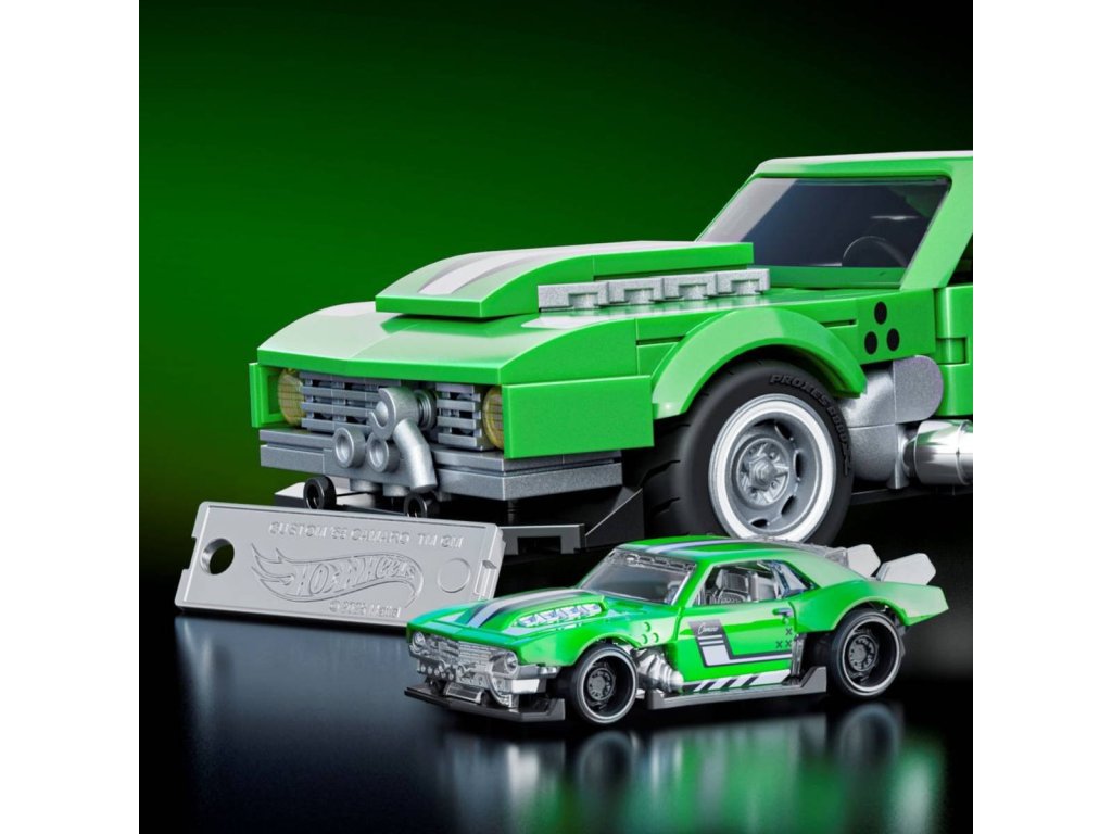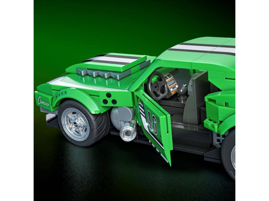 MATTEL Mega Hot Wheels auto '68 Camaro 1:32. Detailní prémiová stavebnice z kovu a plastu, součástí angličák a samolepky, 289 dílků. Velikost modelu 17cm