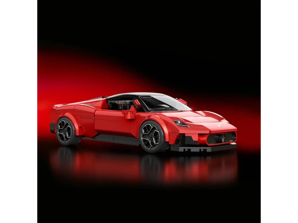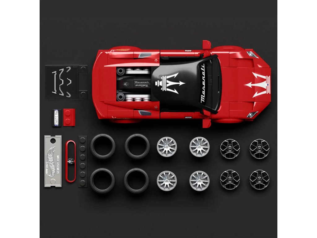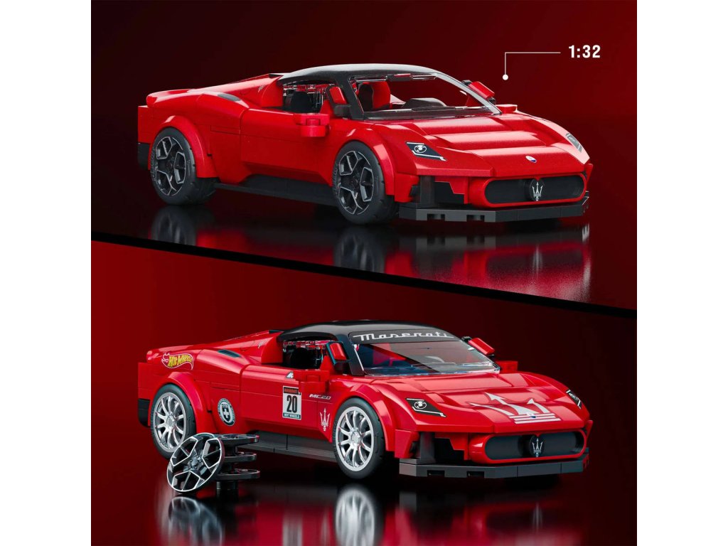 MATTEL Mega Hot Wheels auto Maserati MC20 1:32. Detailní prémiová stavebnice z kovu a plastu, součástí angličák a samolepky, 250 dílků. Velikost modelu 16,5cm