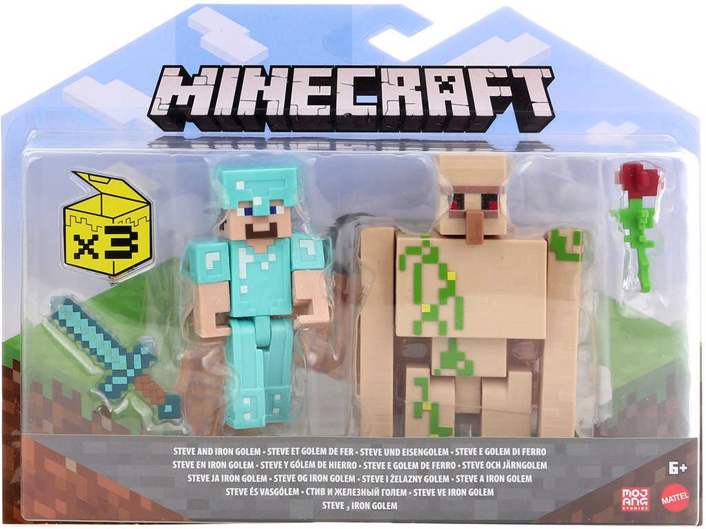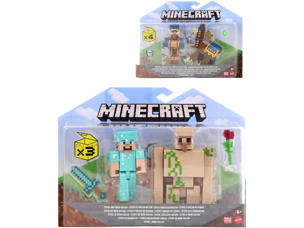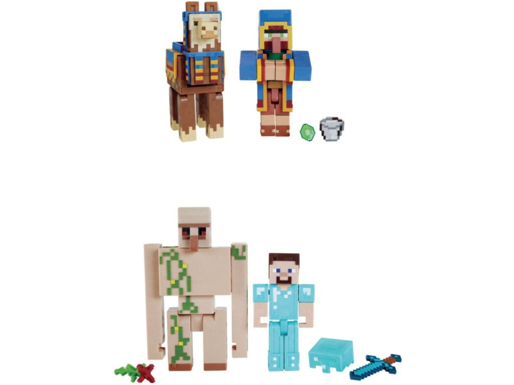 Je čas vytvořit, prozkoumat a přežít s postavami Minecraftu. Figurky v tomto dvojbalení byly vytvořeny autenticky za použití typického pixelového designu videohry, takže jsou skvělé na