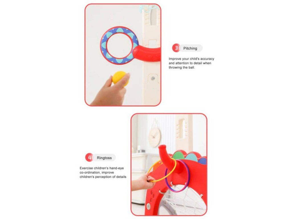 Tento multifunkční dětský basketbalový koš se stojanem je zábavné herní centrum 4v1, které dětem nabízí hned několik pohybových aktivit v jednom produktu. Díky různým herním prvkům podporuje všestranný pohyb, koordinaci a rozvoj motoriky.