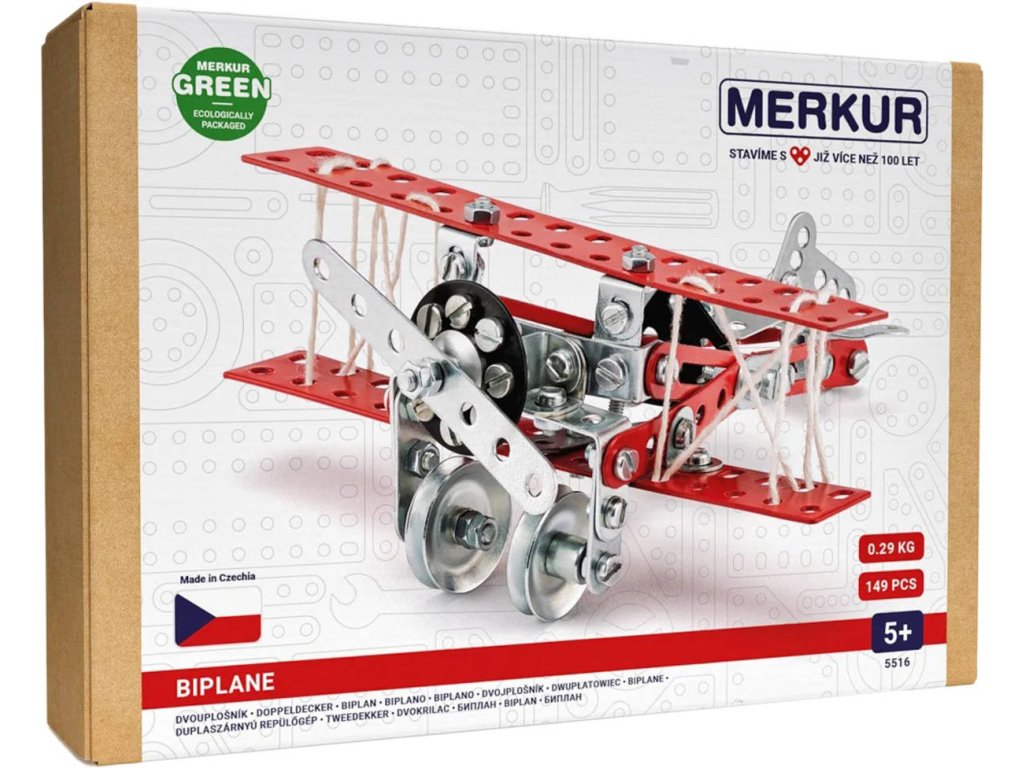 Vládnout obloze může každý s tímto retro dvouplošníkem. V balení najdete podrobný návod, Merkur sadu nářadí a unikátní Merkur díly. Merkur díly jsou univerzální a tak vás neomezí v