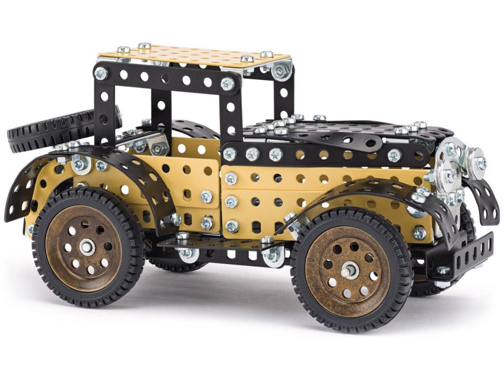 Klasická stavebnice Merkur obsahuje součástky nutné pro stavbu veterána. V balení najdete podrobný návod, Merkur sadu nářadí a unikátní Merkur díly. Merkur díly jsou univerzální a tak vás neomezí v
