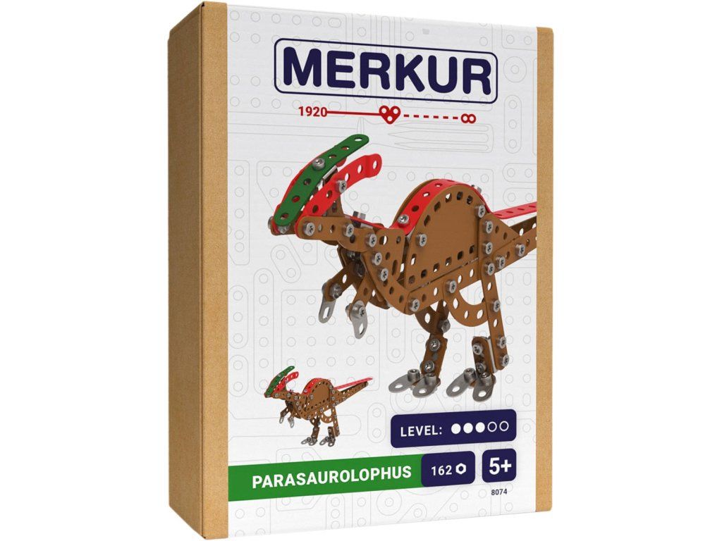 MERKUR 8074 Dinosauři: Parasaurolophus. Kvalitní, kovová konstrukční stavebnice, 162 dílků, model 20cm, součástí návod + pracovní nářadí. Vyrobeno v Česku.