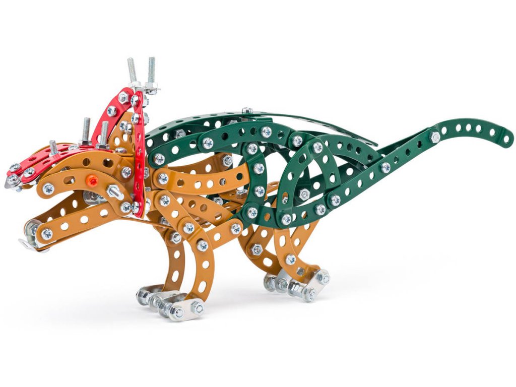 MERKUR 8104 Dinosauři: Diabloceratops. Kvalitní, kovová konstrukční stavebnice, 284 dílků, součástí návod + pracovní nářadí. Vyrobeno v Česku.