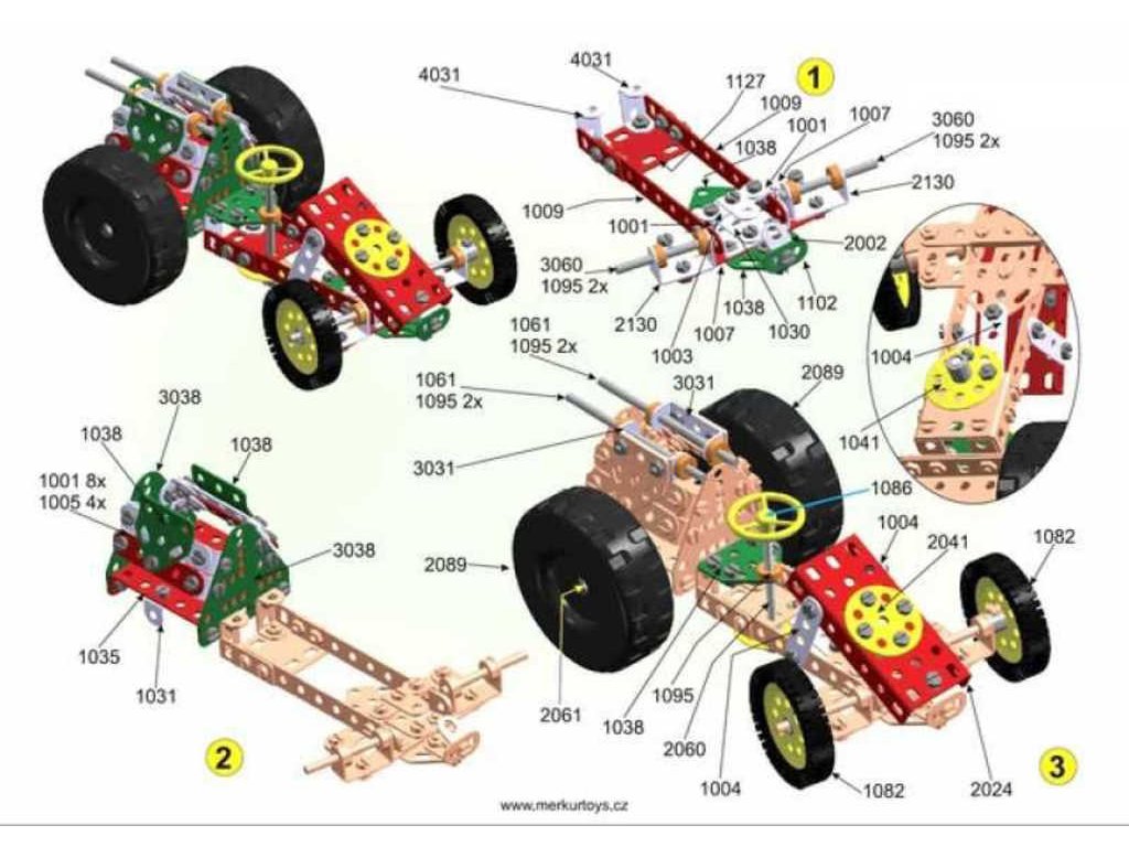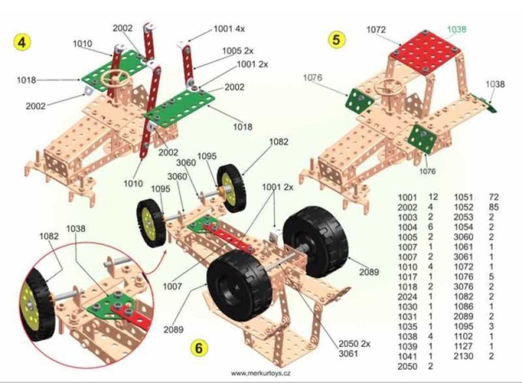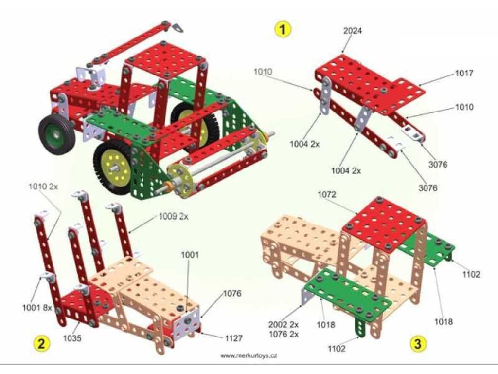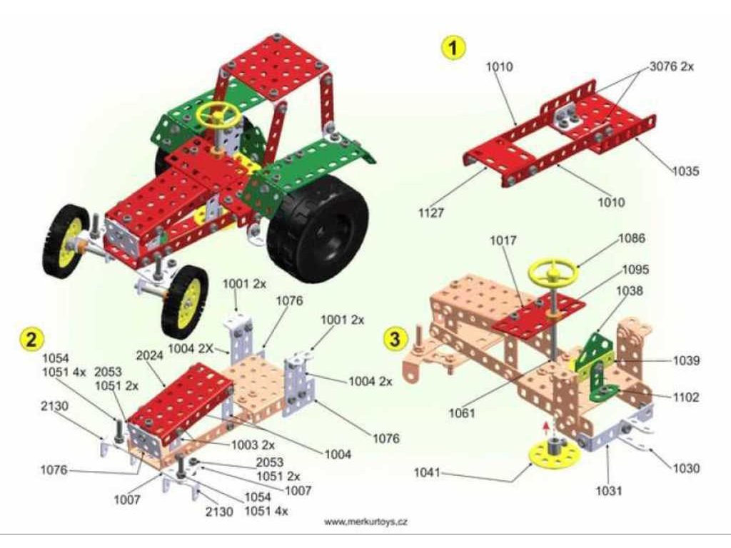 Obsah balení: 341 dílků stavebnice, pracovní nářadí, šroubky a matice, návod