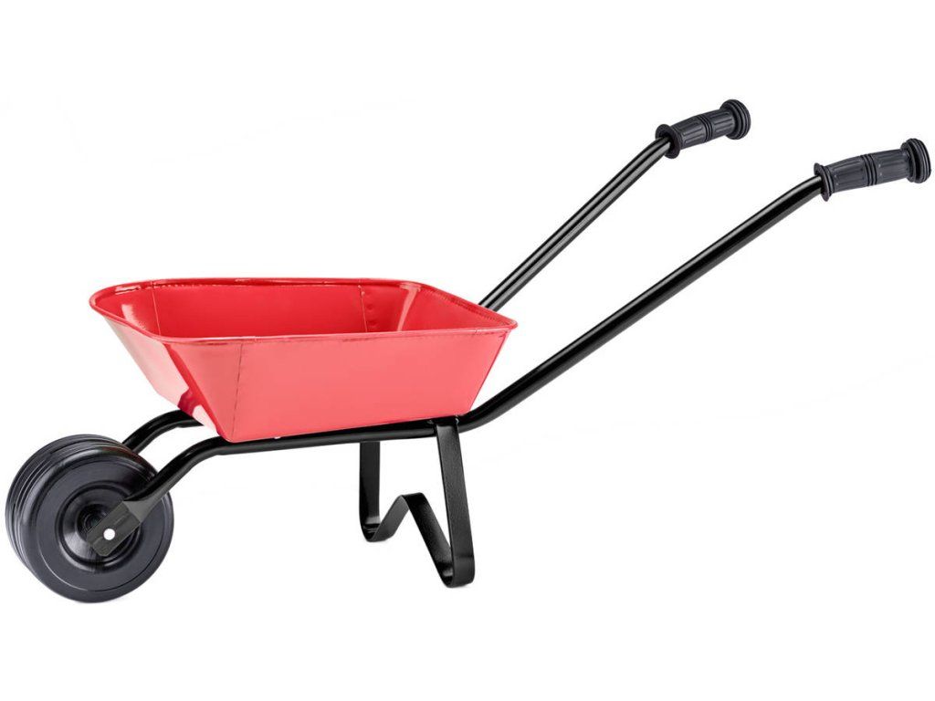 Kvalitní dětské červeno-černé plechové kolečko Merkur. Pevná kovová konstrukce, pogumovaná rukojeť, kolo z tvrdého plastu. Vhodné na pískoviště nebo zahradu.