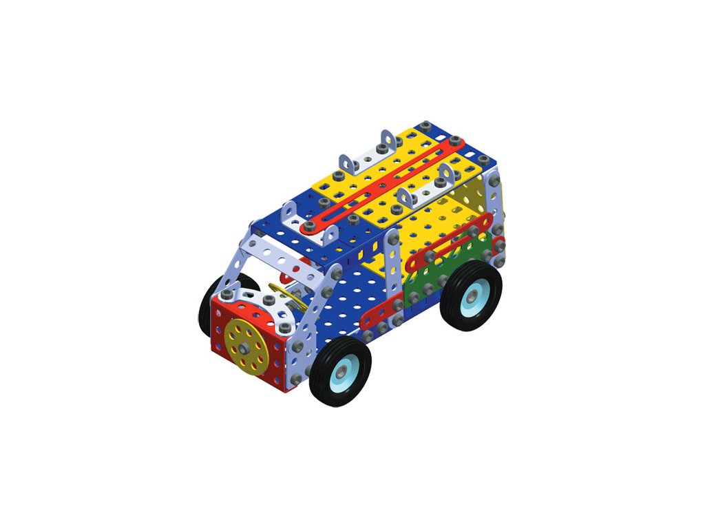 Univerzální jednovrstvá klasická stavebnice - nejmenší z velkých stavebnic. Obsahuje základní sestavu dílů jako jsou pásky, oblouky, plotničky, úhelníky, malá kola, pneumatiky atd. včetně šroubků a