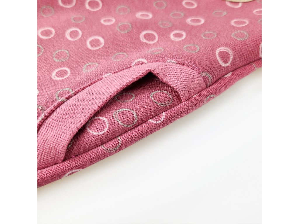 - smykový – používáme ho do kolekce podzim/zima, je teplejší, z rubu má smyčky a slovo smyk najdete v názvu výrobku. Tento materiál moc nedoporučujeme pro ekzematickou pokožku, protože smyčky mohou o stroupky zavadit a pokožku spíše rozdráždit. Ovšem ze zkušenosti víme, že maminky pořizují i tyto výrobky a dávají je dětem jednoduše naruby.