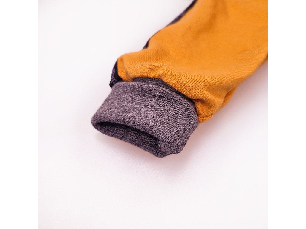 - smykový – používáme ho do kolekce podzim/zima, je teplejší, z rubu má smyčky a slovo smyk najdete v názvu výrobku. Tento materiál moc nedoporučujeme pro ekzematickou pokožku, protože smyčky mohou o stroupky zavadit a pokožku spíše rozdráždit. Ovšem ze zkušenosti víme, že maminky pořizují i tyto výrobky a dávají je dětem jednoduše naruby.